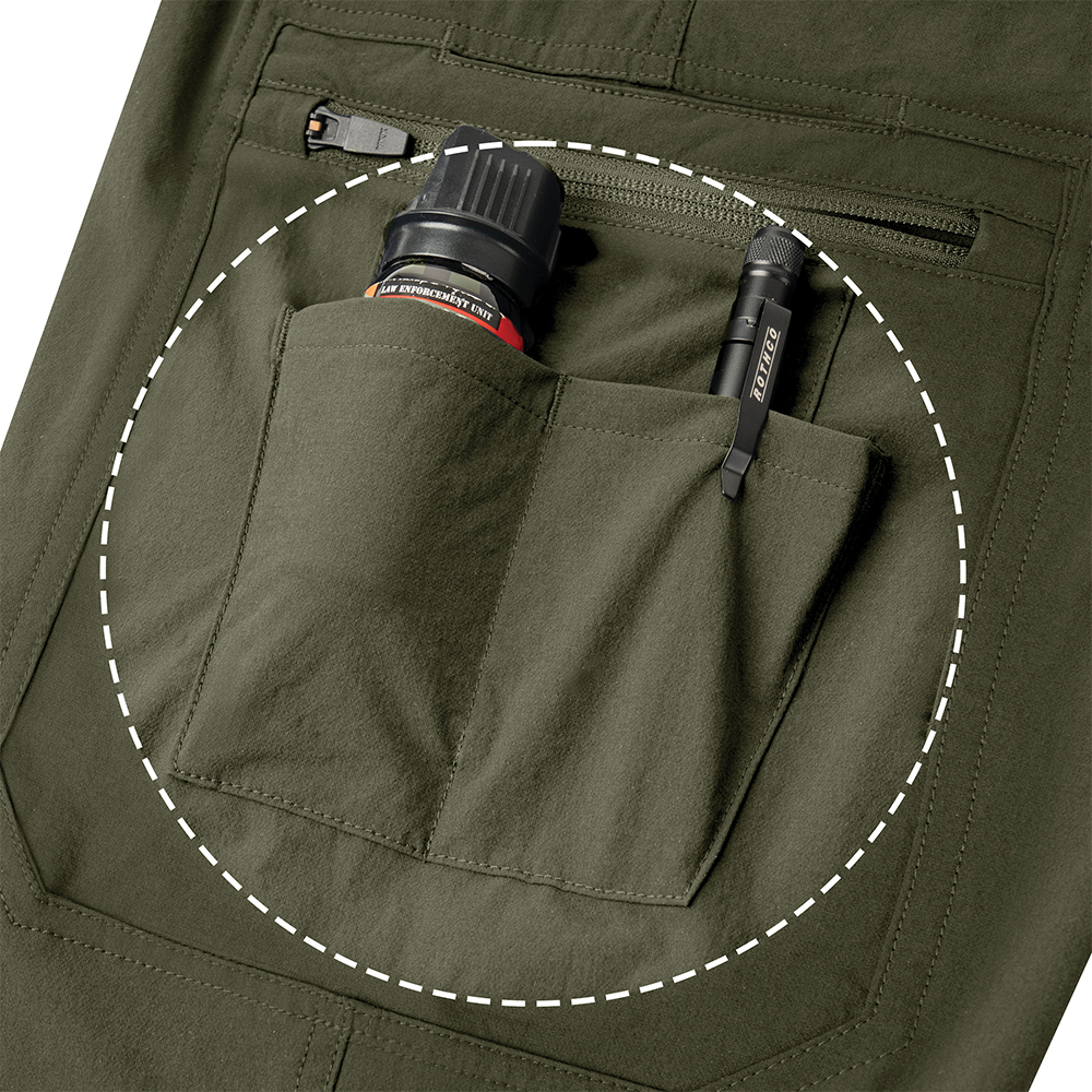 - Design: Stretch performance fabric with crotch gusset and low-profile tactical pocket layout
