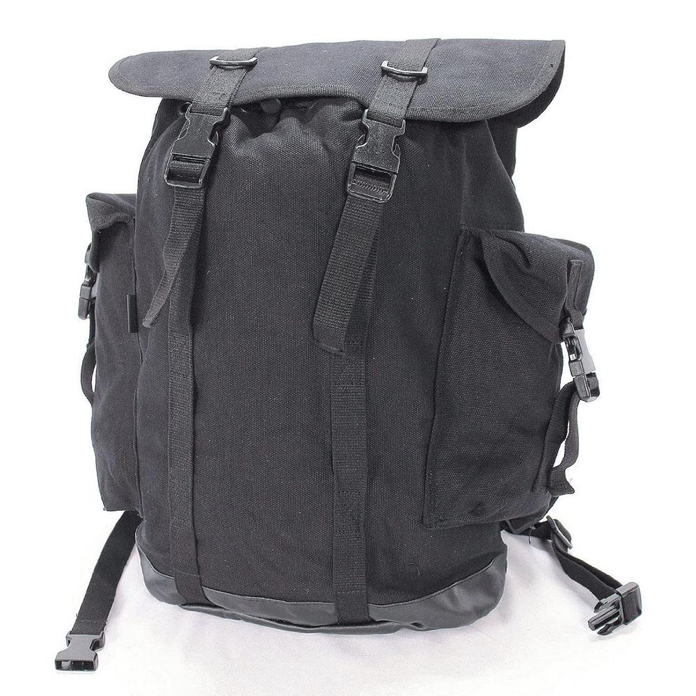 This is a classic German rucksack design which is perfect for camping, or everyday use. The upper material is 100% cotton and the bottom is synthetic leather for extra resilience. Its largest main compartment closes with a drawstring and stoppers, theres