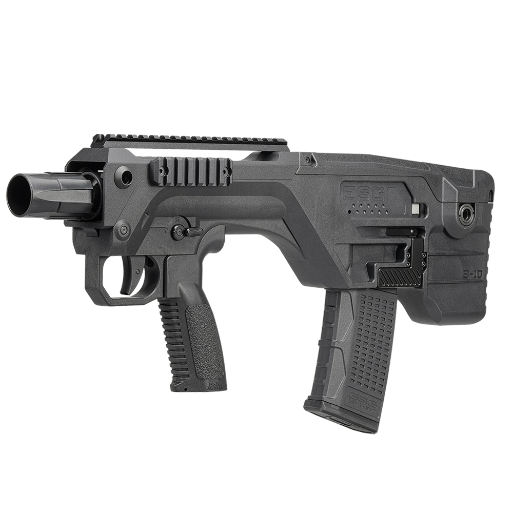 The G&G Armament ESG B-10 2.0 Airsoft Rifle is a compact, high-performance gas-powered rifle designed for players who want mobility without sacrificing range or consistency. Built around a bullpup configuration, the ESG B-10 2.0 keeps the overall length short while retaining a full-length inner barrel, making it ideal for close-quarters play as well as mid-range engagements. Powered by green gas, this rifle delivers smooth cycling, efficient gas usage, and reliable performance in fast-paced skirmishes. The simplified single-barrel gas system improves efficiency and reduces maintenance, while ambidextrous controls ensure comfortable operation for both left- and right-handed users. With multiple mounting options including Picatinny rails and M-LOK sections, the ESG B-10 2.0 is ready for optics, grips, lights, and other accessories straight out of the box.
