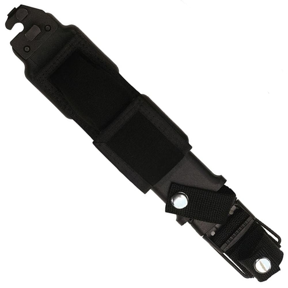 A sharpening stone is included in the front pouch, ensuring the blade remains sharp for extended use. Perfect for outdoor enthusiasts and professionals seeking a reliable tool.