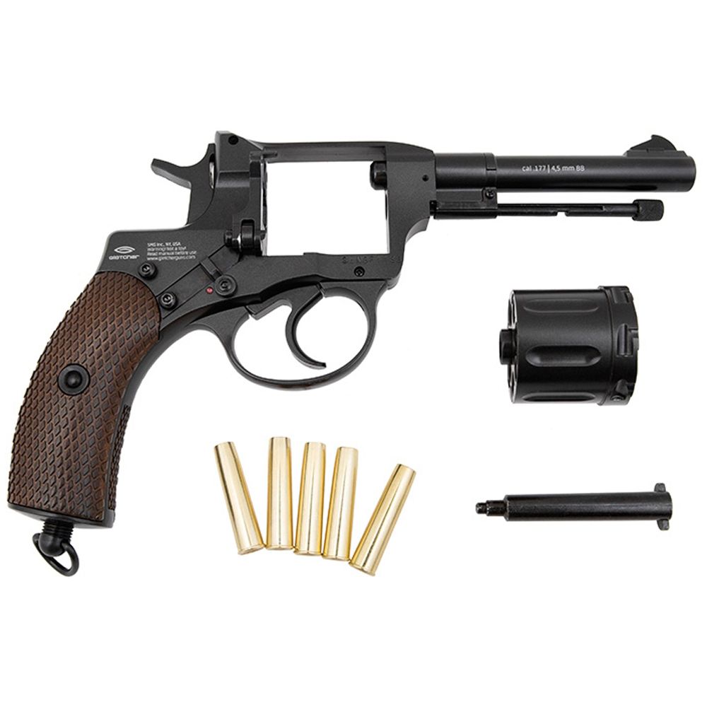 Continuing their line of legendary Russian firearms, Gletcher have created the NGT F BB gun in honour of the Nagant M1895. Built to look, feel, and fire just like the original, this airgun replica features a unique 7-round cylinder with a loading gate. The frame is a full metal construction with a removable polymer grip that conceals the CO2 storage compartment. A safety switch has been added to this model for added precaution.