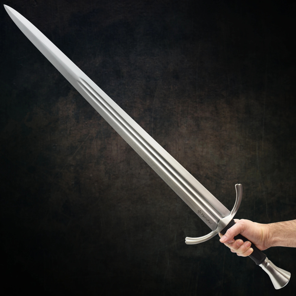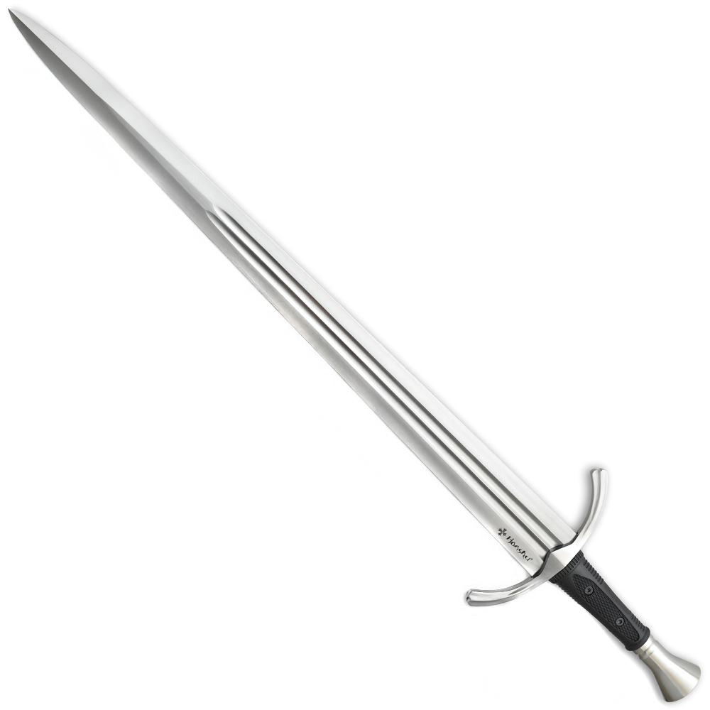 The Honshu Single-Handed Broadsword represents a modern spin on a proven, time-tested sword design with sleek, rugged tactical engineering and perfect blade-to-hilt balancing. It has a 30 3/8”, 1060 carbon steel blade with a satin finish, which extends from a cast 2Cr13 stainless steel handguard. The grippy handle is heavily textured, black TPR and it has a cast 2Cr13 stainless steel pommel with a satin finish. The 40” overall broadsword slides smoothly into its semi-glossy, black wooden scabbard with metal accents. Honshu continues to expand its exceptional sword line and this sleek, tactical single-handed broadsword is a must-have for your collection!