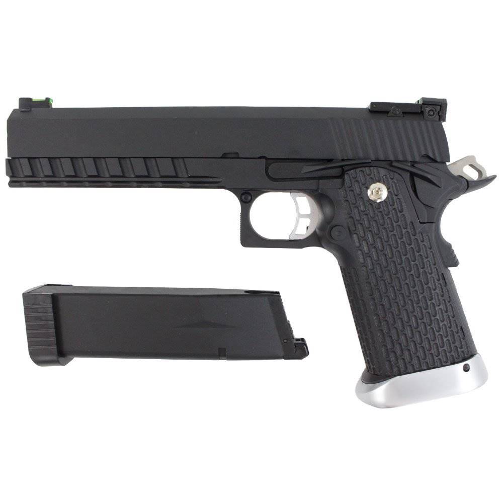 KJ Works are known for producing excellent 1911 airsoft pistols, and the HI-CAPA KP-06 is no exception. As the name states, this gun boasts a high capacity 28-round mag, and with its adjustable hop-up, fiber optic sights, and snappy blowback capabilities, you'll have a blast shooting with the KP-06.
