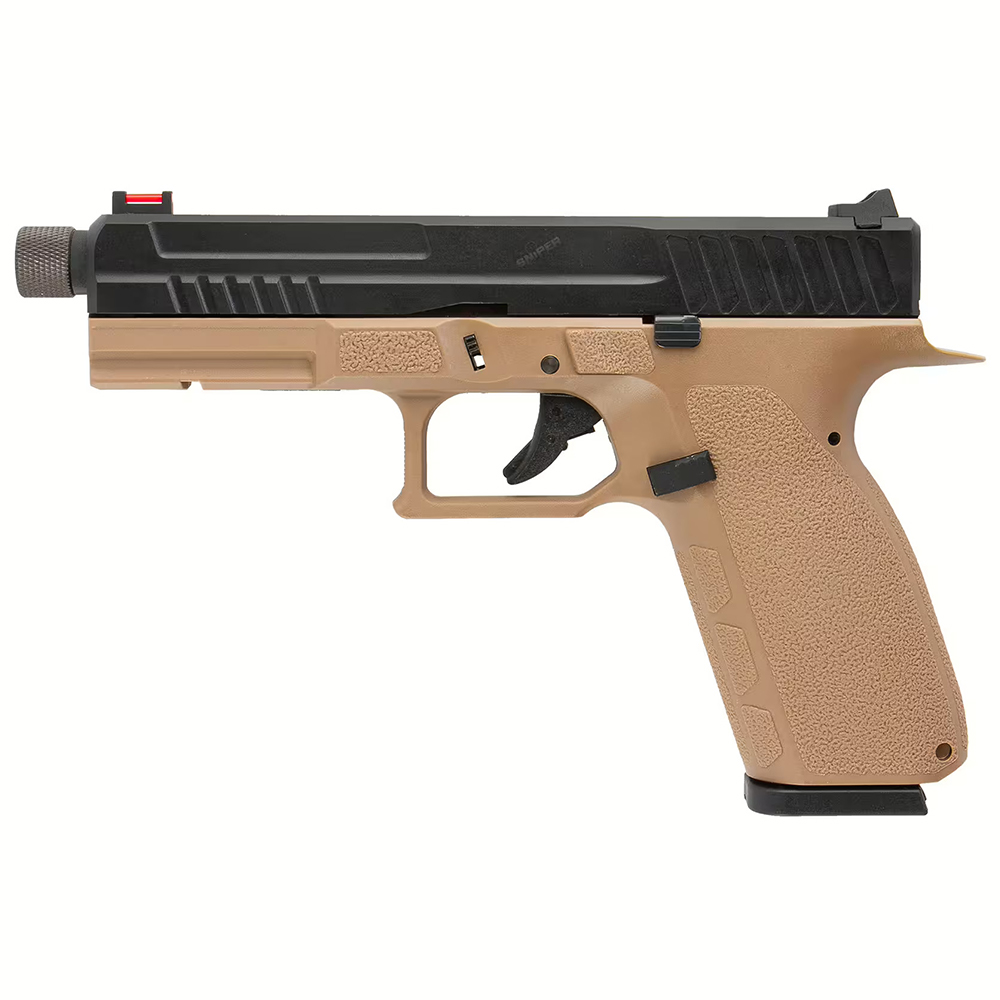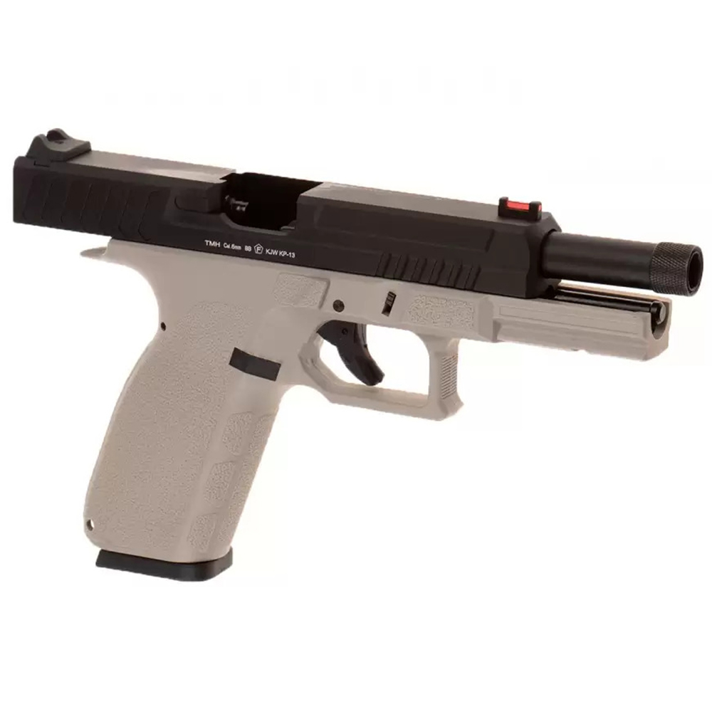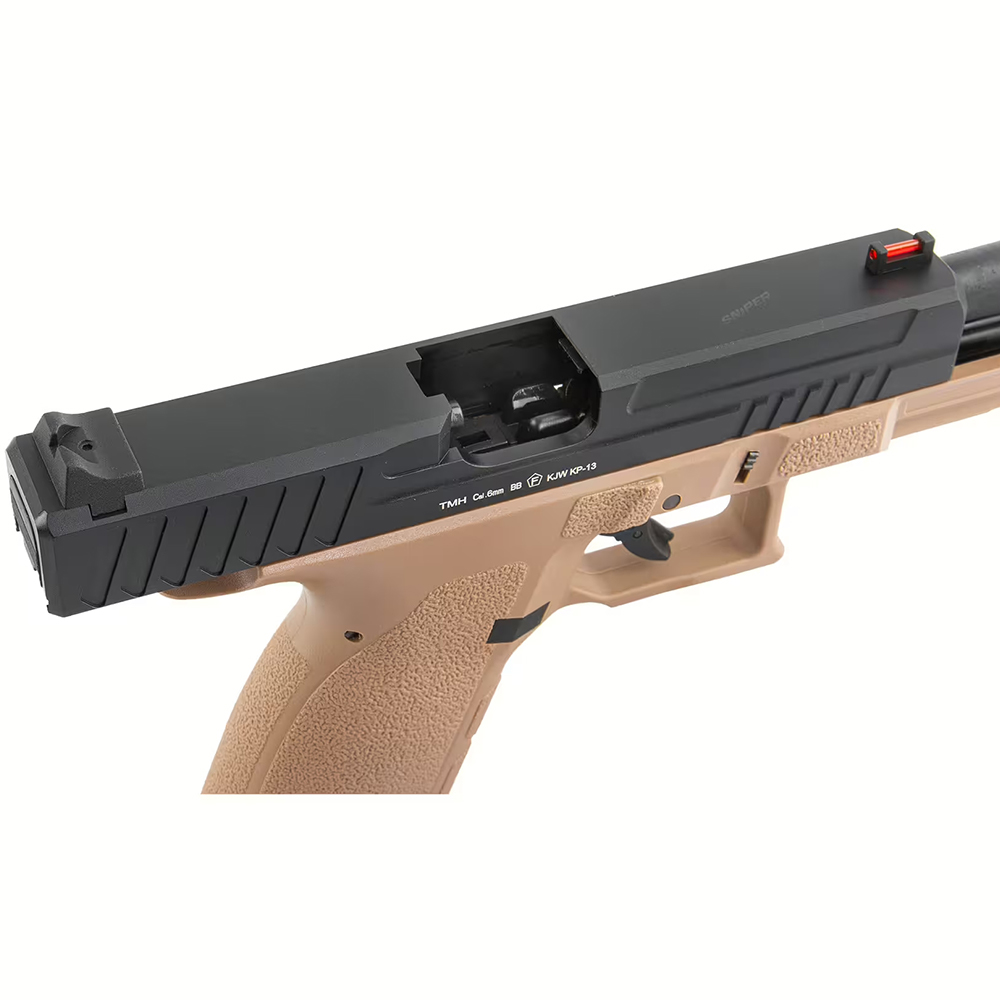 The KP-13 TBC airsoft gun is a versatile, high-performance sidearm designed to meet the demands of both skirmishes and tactical training. Built with a blowback system, it offers a realistic shooting experience by simulating the recoil of a real firearm, adding to the overall immersion during gameplay. This airsoft pisol stands out for its compatibility with both CO2 and gas propellants, giving you the flexibility to choose your preferred power source depending on the situation. Whether you're looking for greater power from CO2 or more temperature control with gas, this gun adapts to your needs.