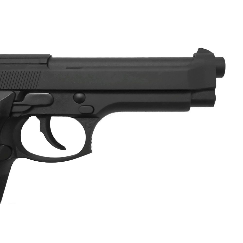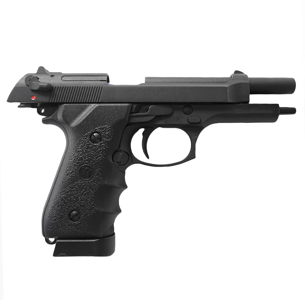 The M9 Tactical CO2 Airsoft Pistol FM is an excellent addition to the KJ Works family. This high-quality blowback pistol has a solid, full metal construction with fixed front and rear sights, an adjustable hop-up system, and the capability to shoot in both single and double action. Holds 24 rounds of 6mm airsoft BBs.