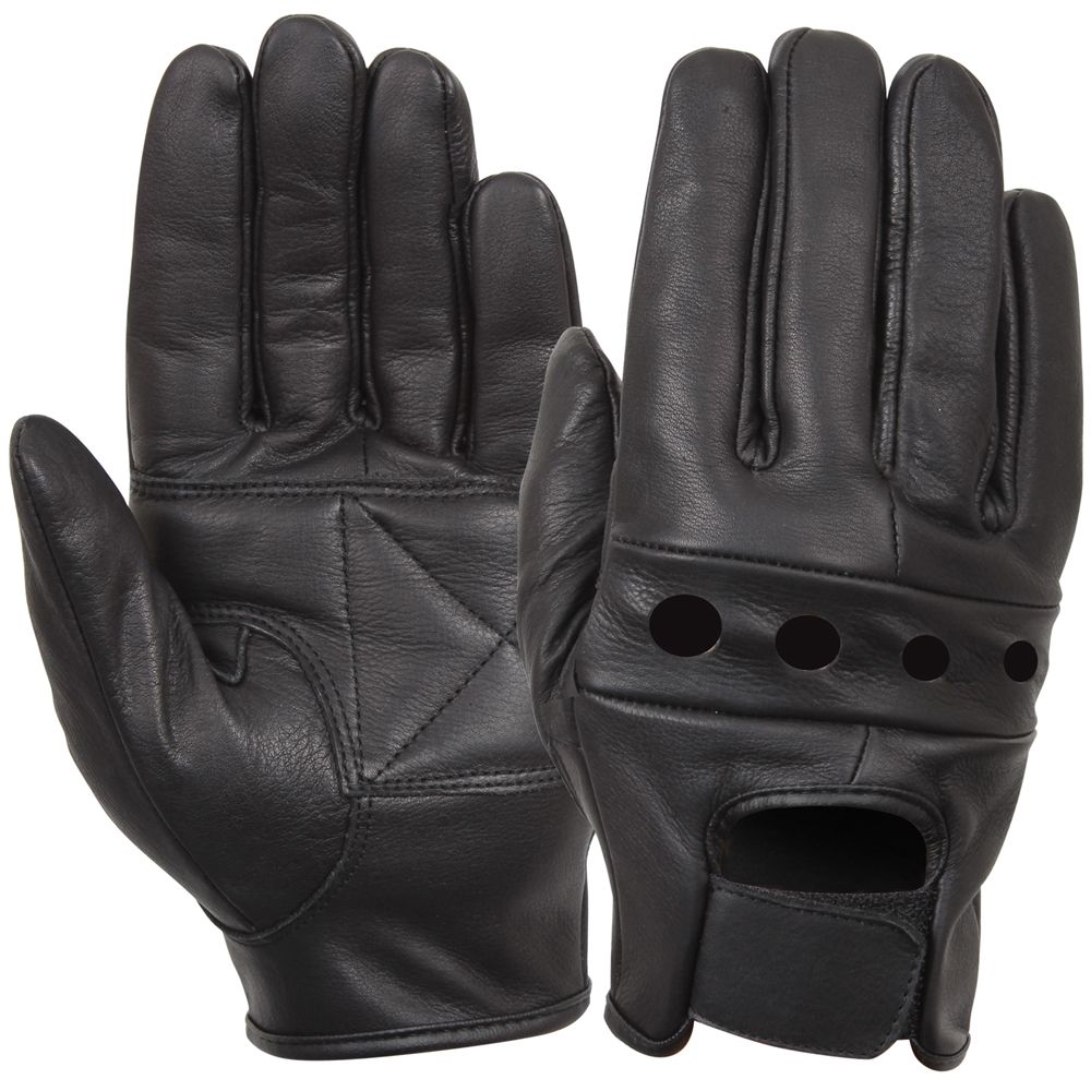 Rothco's Black leather motorcycle gloves feature a 100% genuine cowhide leather with vented knuckles, padded palms for comfort and hook & loop wrist closures for an ideal fit.