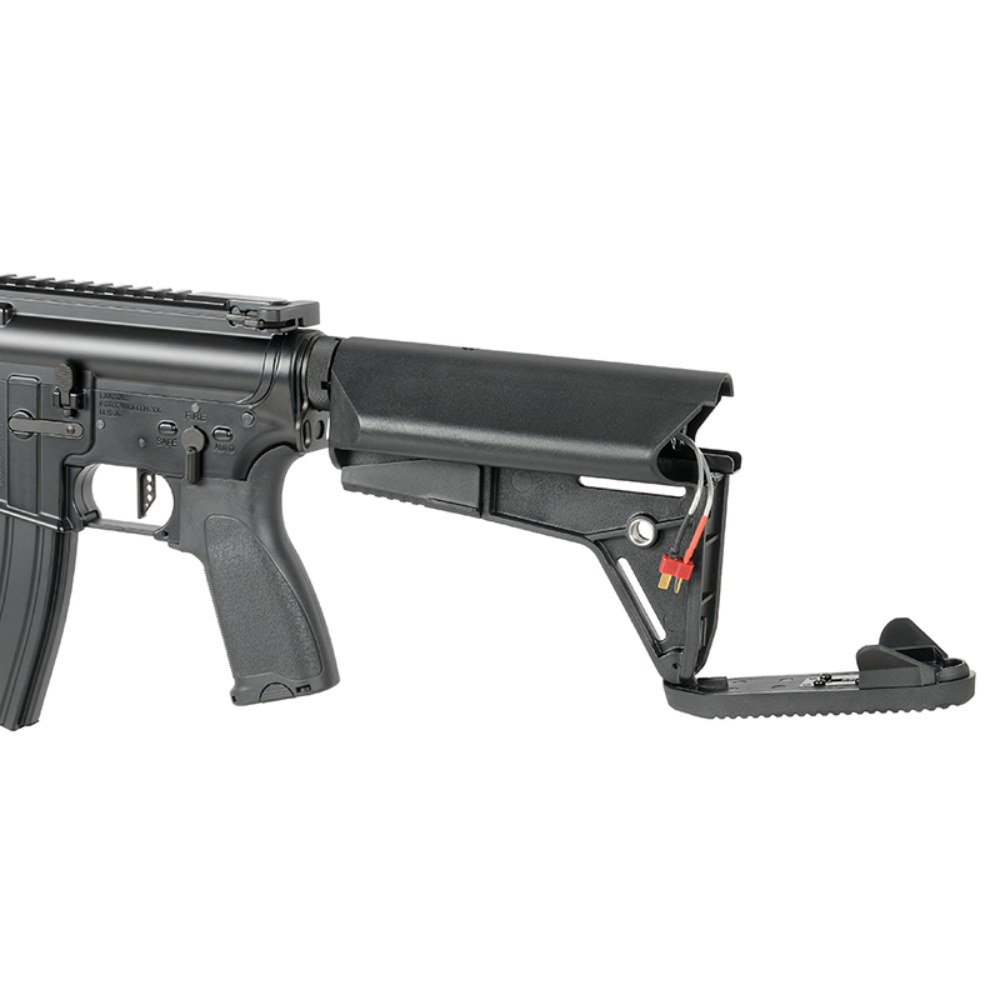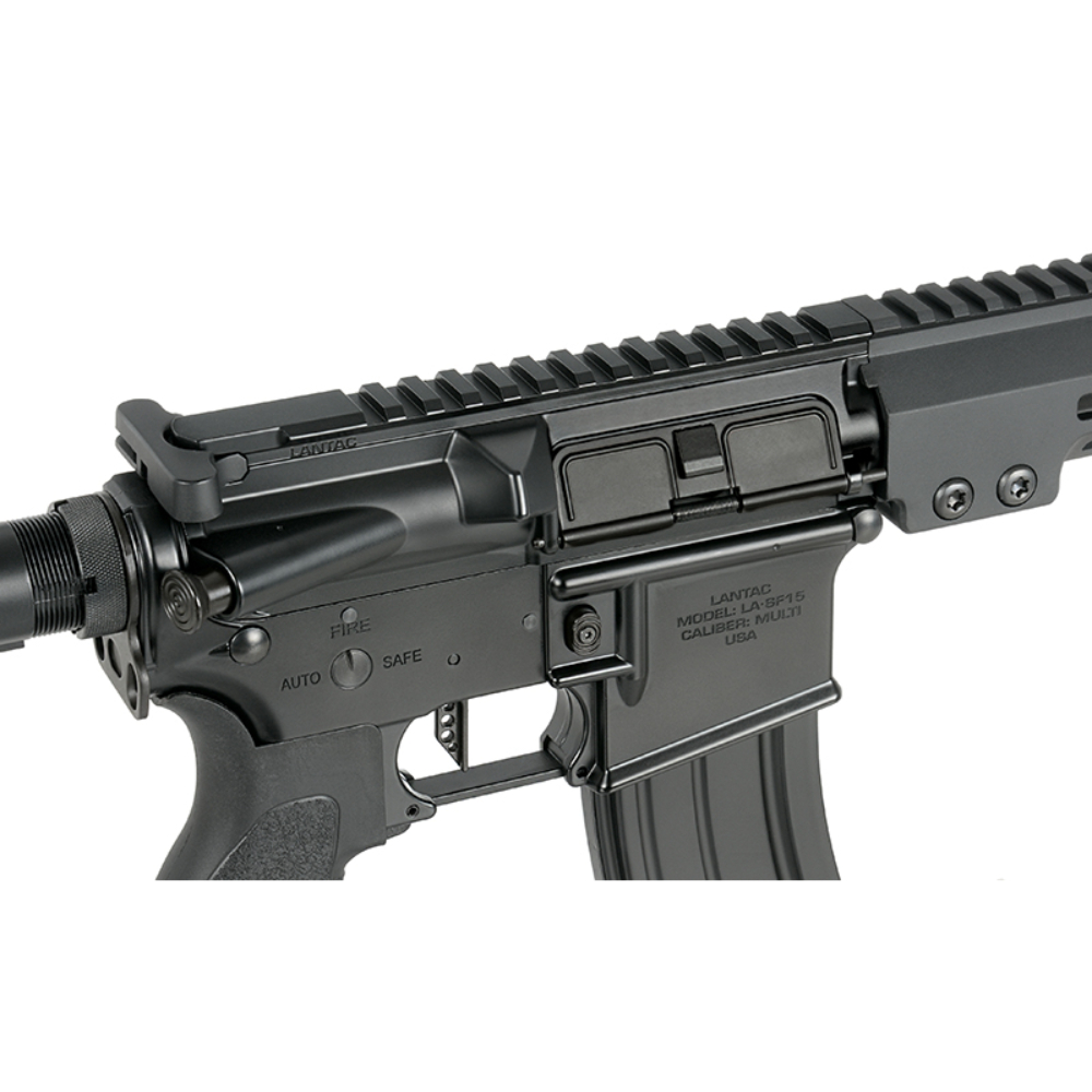 Since 2012, LanTac specializes in the design and manufacture of AR15 rifles and accessories such as the popular LanTac Dragon and Drakon muzzle brakes. The EMG custom LanTac faithfully recreates the details of the real LA-SF15 receiver. This AEG features high-detail LanTac trademarks stamped deep on both side of the receiver, giving it an authentic appearance. Even so far as adding a flat-faced E-CT1 styled trigger, a licensed LanTac Dragon muzzle brake, and USR marked upper receiver. The rifle features a light weight, ultra-slim machined aluminum MLOK free-float handguard, prefect for mounting all kinds of MLOK accessories. On top of the rifle you'll find a full-length 20mm Picatinny rail for optics. The functional bolt stop holds the mock bolt open to give easy access to the hopup adjustment dial.