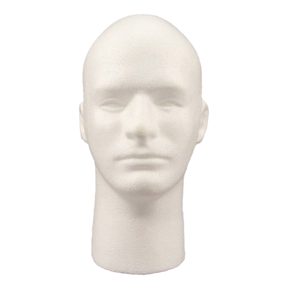 The Male Foam Head With Face is an easy, professional way to display sunglasses, watch caps, operator caps, and other head-wear. Built from expanded polystyrene foam and finished in white, this 11-inch foam head works on window or shelf displays and keeps your merchandise front and center.