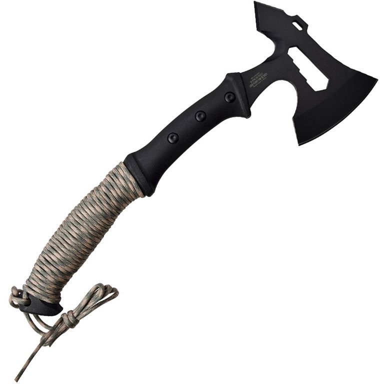 The Master Cutlery Survivor SV-AXE001CA Axe is a rugged and reliable tool designed for survival situations and outdoor use. Featuring a sharp, durable blade, this compact axe is perfect for chopping, splitting, and clearing tasks in the wilderness. The camo design adds a tactical edge, while the ergonomic handle ensures a secure and comfortable grip, even in tough conditions. Whether you're camping, hiking, or in a survival scenario, the SV-AXE001CA is an essential, high-performance tool built to withstand the elements.