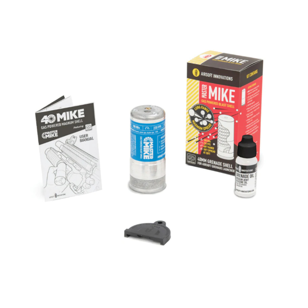 The Master Mike is a wide spread 40mm shell that can amazingly fire one hundred BBs at 220fps with a 10ft spread at 20ft and a 60ft effective range. If we compare that to the 40 Mike we find that while the Master Mike is a closer range weapon, designed for CQB and urban environments while the 40 Mike is designed for more outdoor engagements at longer ranges. We now have two shells covering a wide array of engagement scenarios.