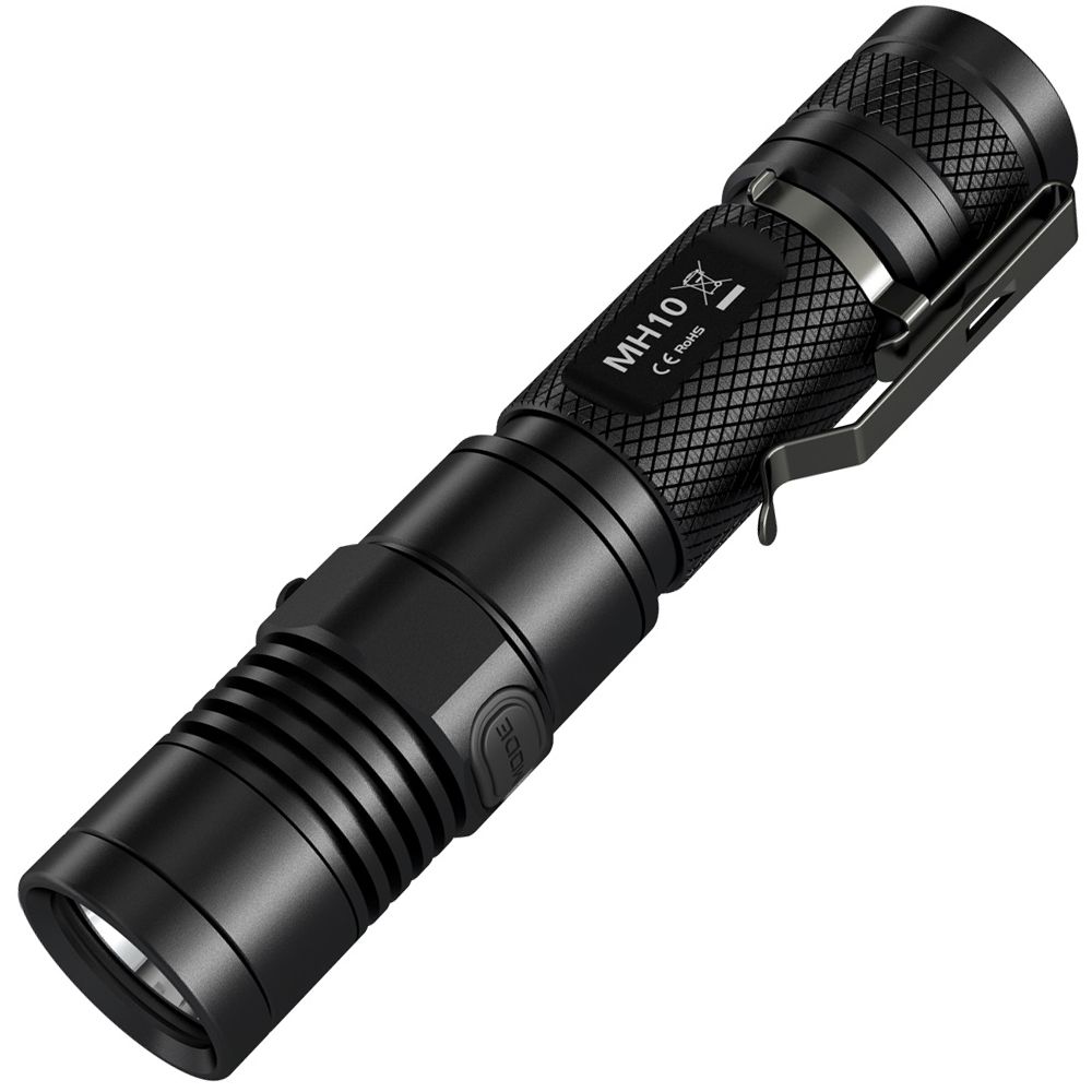 Nitecore MH10 is the new vivid, lightweight and rechargeable flashlight with battery and charger included. It clears up night vision of over 250 yards. Convenient side switch memorizes the setting and helps you to adjust the level of brightness by pressing a button. It is the ideal EDC light you want to bring with you wherever you go. USB Rechargeable: Integrated USB part allows for easy and safe charging
