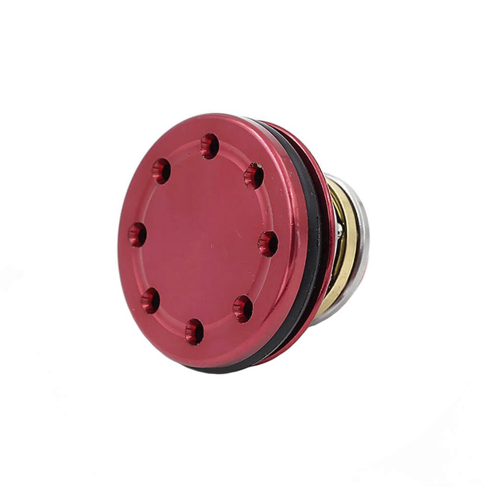 Modify Aluminum Piston Head with Bearings Works with any standard AEG gearbox. Made of Aircraft aluminum alloy. Made with revolutionary design to be more effective and 100% airtight. It's for Modify/ Systema series Bore-Up Cylinder.