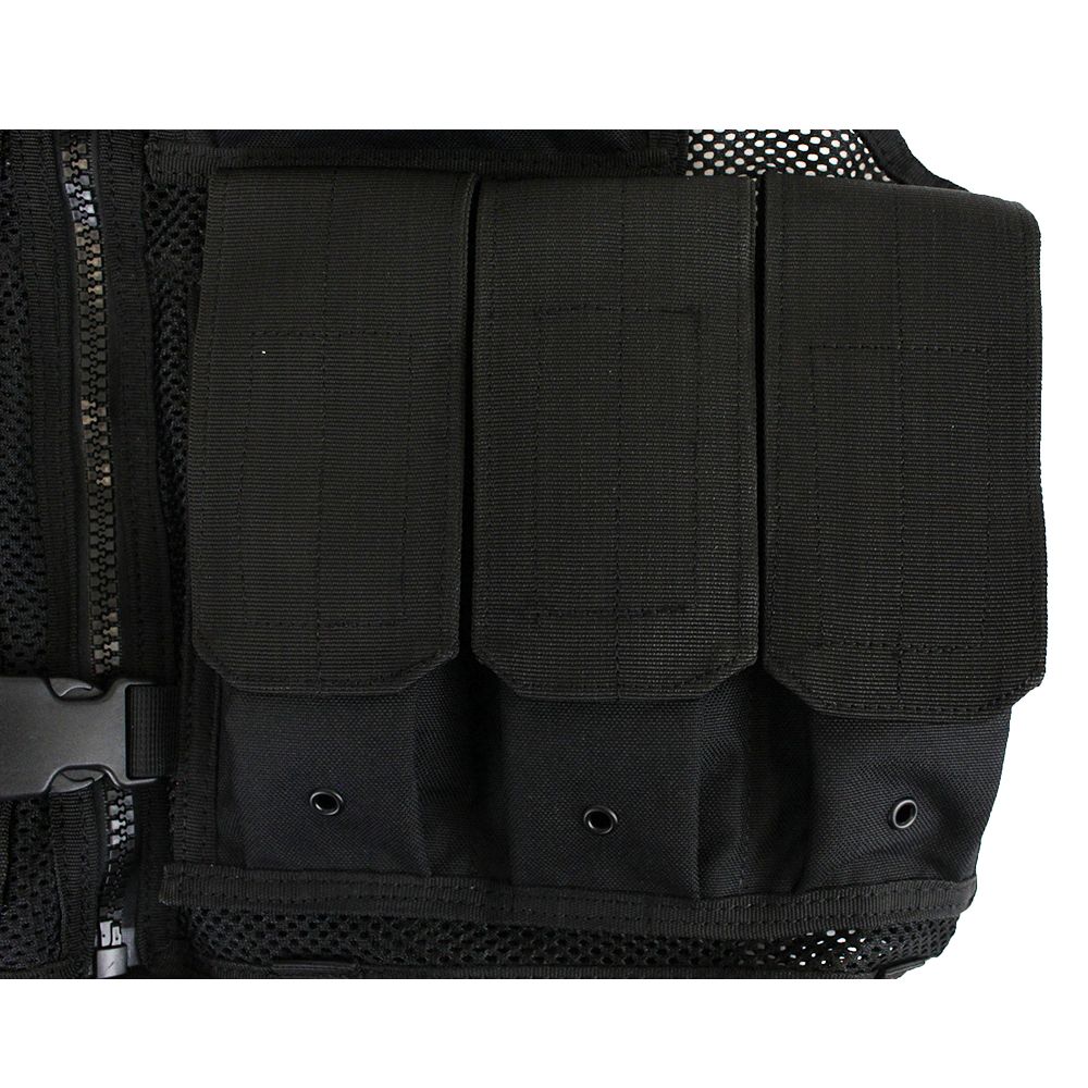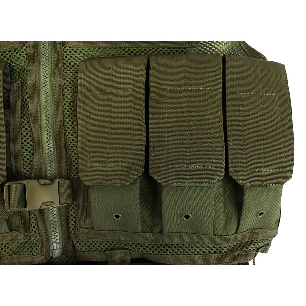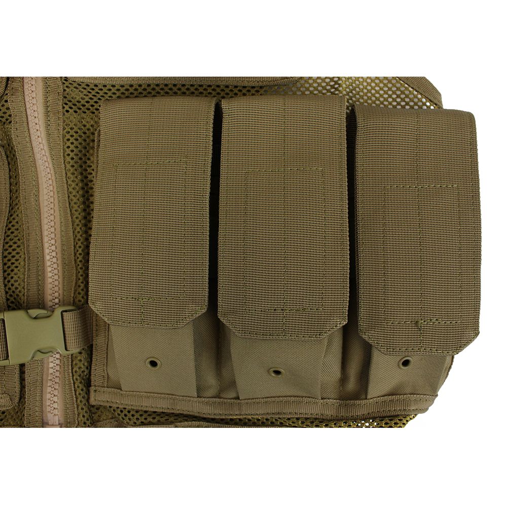 Put some gear on your chest with this Raven X Modular Tactical Vest. The heavy-duty nylon construction is tightly fastened with burly zippers, buckles, hook and loop panels, and compression straps. A total of 6 M4 mag pouches, 2 utility pouches, 2 inner document pockets, and a hydration bladder compartment can pack enough equipment for any mission. Adjustable size fits up to a 44-inch chest.