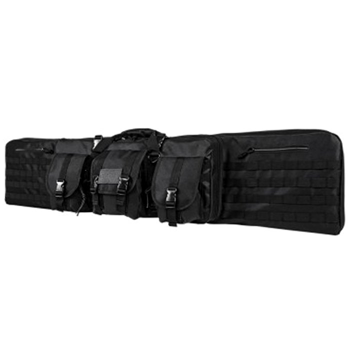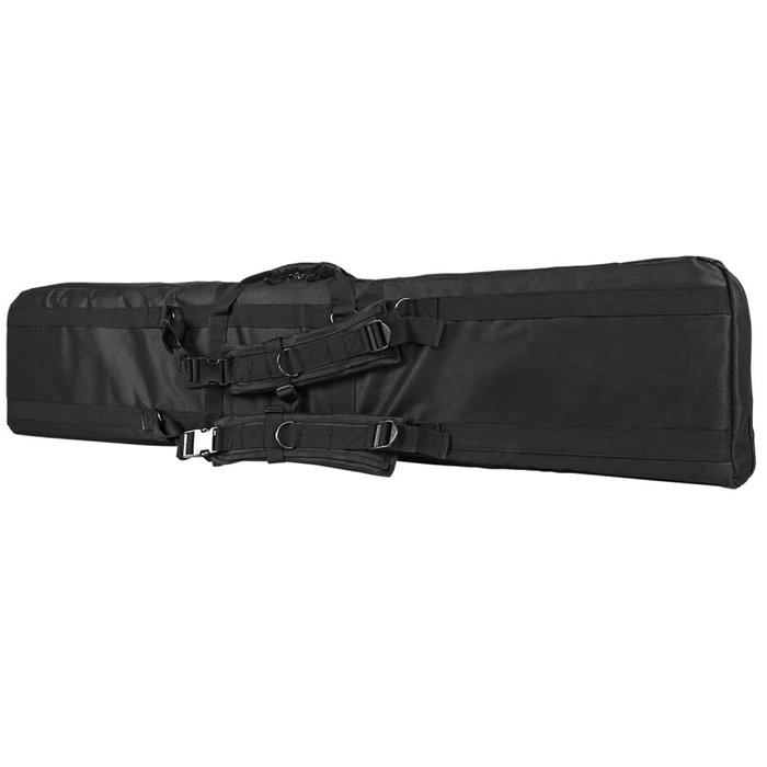 The NcStar Vism Deluxe Rifle Case proves that bigger can be better. This impressive 1.4 m (55 inch) gun case is designed to protect and transport up to two rifles. Front pockets ensure that you can take all of your essential shooting gear along. The heavy duty PVC case can be carried with the padded carry handles or with the adjustable padded backpack straps. A sternum strap with a plastic quick connect buckle is included to help support heavy loads.