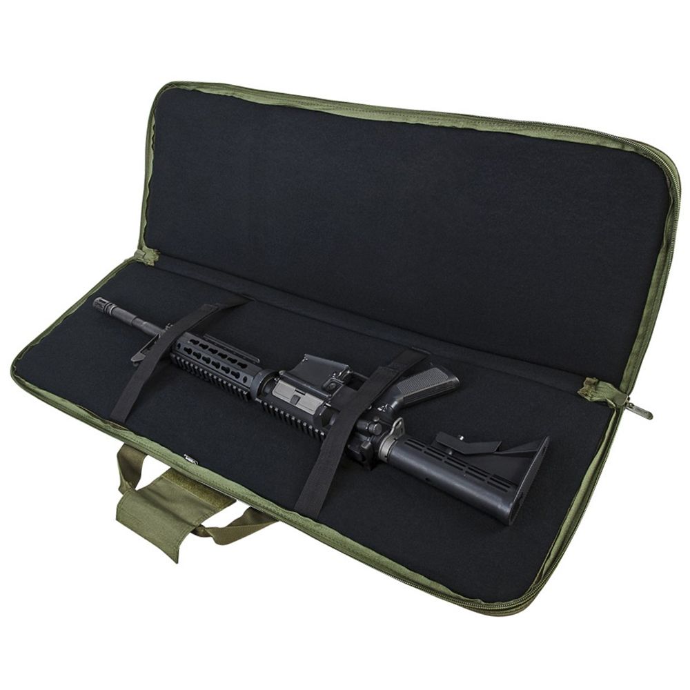 The NcSTAR Vism Rifle Case is specially engineered to protect and transport your rifle. The durable PVC case features four external mag pouches, heavy duty zippers, and an adjustable shoulder strap. Inside, the rifle is secured with two elastic straps. Measures 914 mm (36 inches) x 330 mm (13 inches).