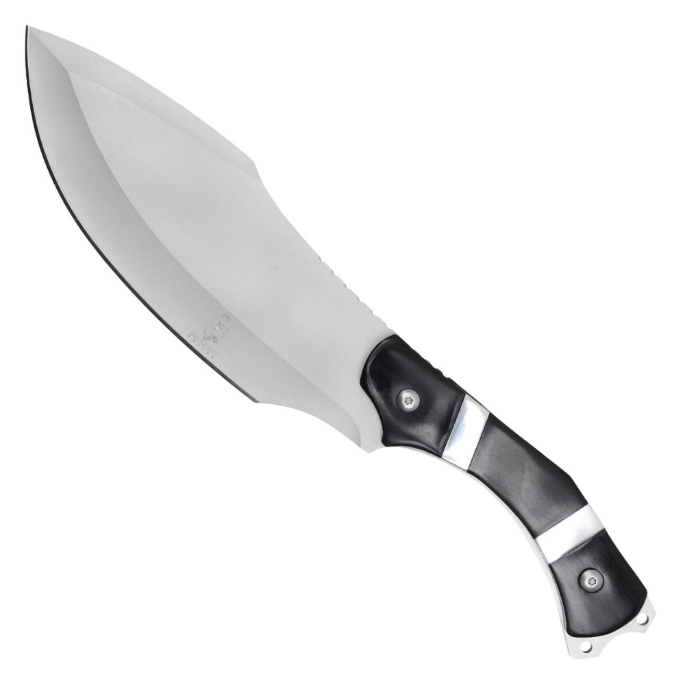 The Buckshot Knives 12" Fixed Blade Hunting Knife features a 6.50" stainless steel clip point blade with a matte finish. This full-tang fixed blade has a black wooden handle with lanyard holes. It's 12.00 overall and 12.5oz. Includes a nylon sheath. Made in China.