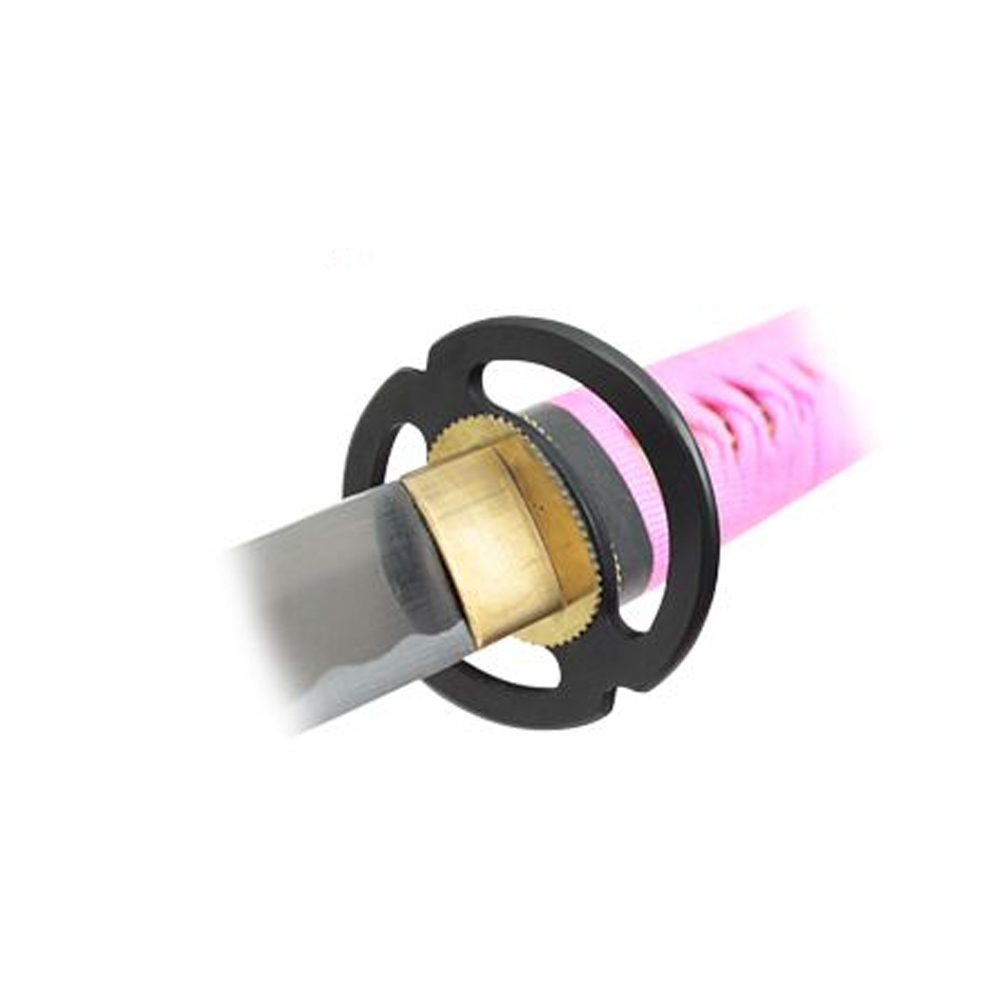 This is a 1045 Carbon Steel Handmade Onikiri "Super Bitch" Katana Sword with Musashi Tsuba - pink color, The blade was sharpened, The Handle is real ray skin wrapped with a pink cotton cord. and the Tsuba is constructed by iron. it also comes with a sword bag and certificate.