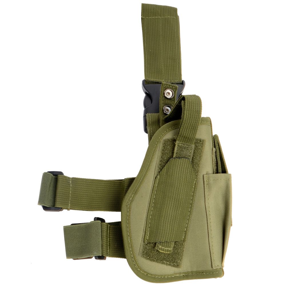 Access your weapon in a moment's notice with the Cybergun Universal Drop Leg Holster. This handy tactical accessory is designed to keep your handgun secure and readily accessible. The adjustable straps make it easy to get a tight and comfortable fit, and keep the holster from slipping down your leg. An extra mag pouch is included on the holster. Available in black, tan, and olive drab.