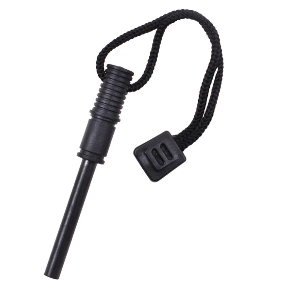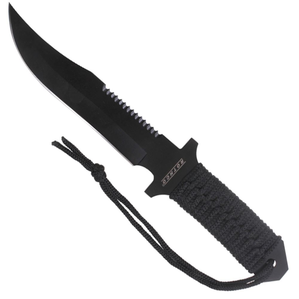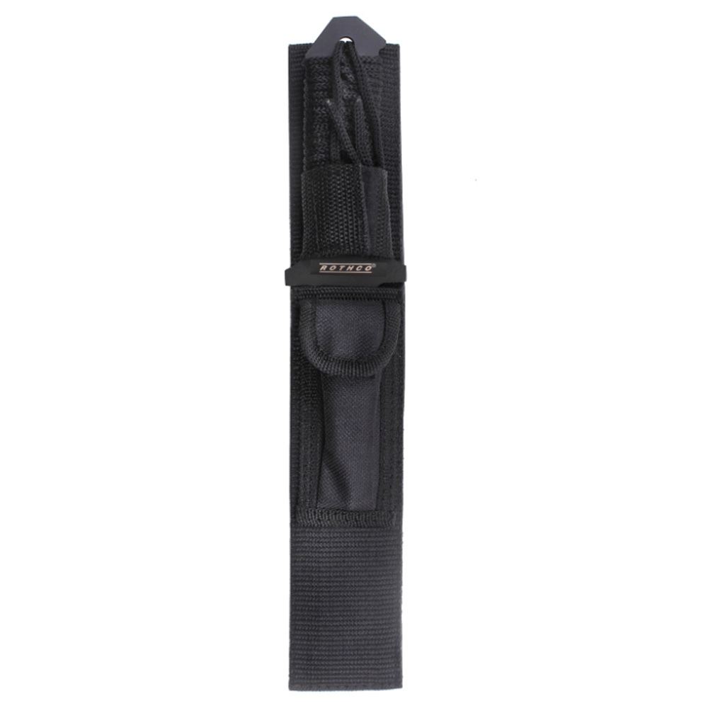 This paracord knife features a modified 7" blade, made of 420 black clip stainless steel. The full knife measures 11 1/2" long with the handle wrapped in 550 lb paracord. The nylon sheath features a magnesium fire starter and hook and loop handle strap.