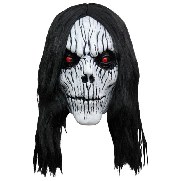 You’re sure to scare everywhere you go in the Possession Halloween Mask. This spooky costume mask features sunken red eyes surrounded by dark black rings. The pale white face is etched with deep black lines, the nose reduced to mere slits. Long black hair hangs limply around the face, providing the finishing touch.