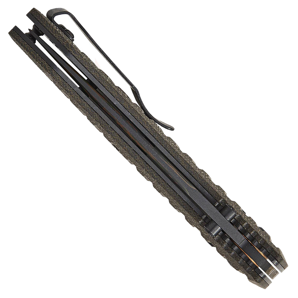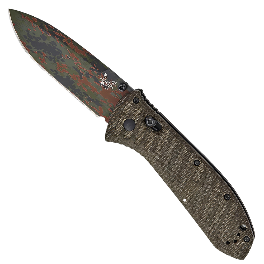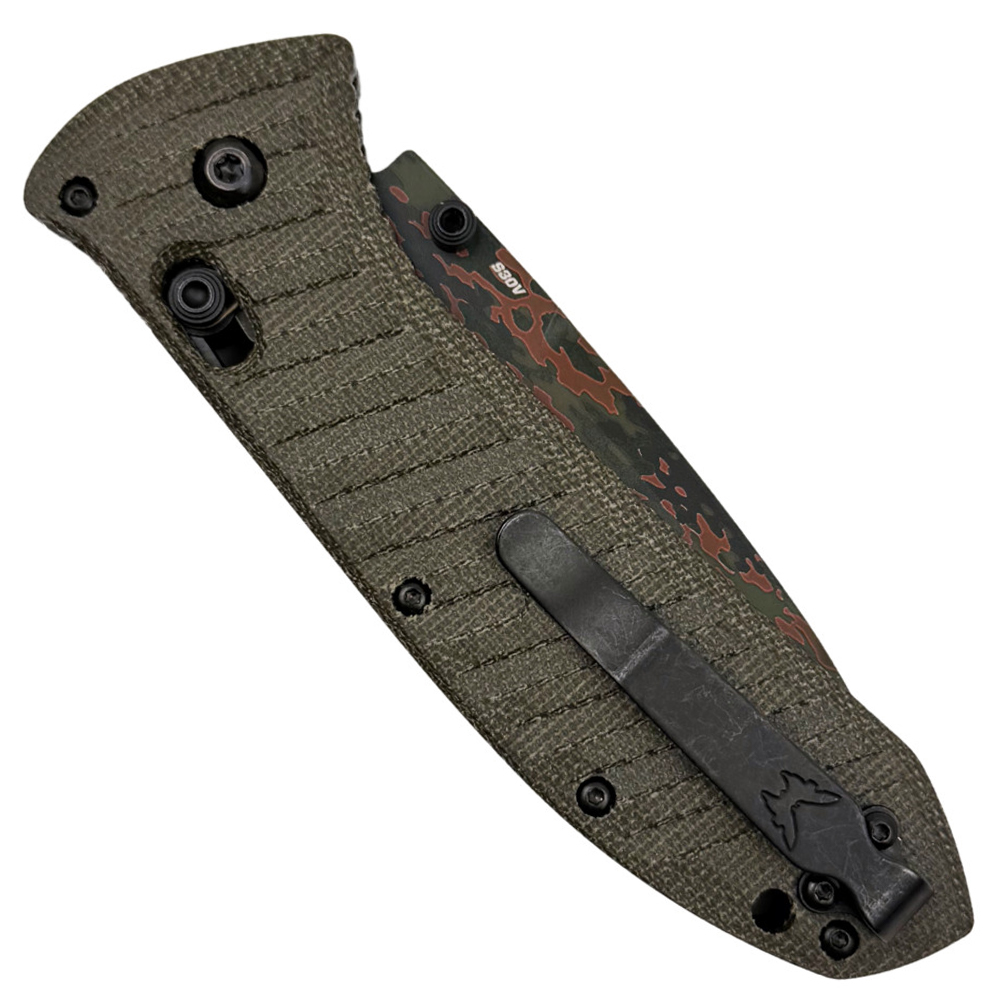Presidio II Tactical Camo Folding Knife is a robust manual folder built for everyday carry and demanding field tasks. The 3.72 in CPM S30V drop point blade features a flat grind for efficient cutting performance and measures 0.12 in thick for balanced strength. A thumb stud opener allows smooth deployment, while the crossbar-style locking mechanism based on Benchmade’s AXIS® lock design ensures secure and ambidextrous operation. Finished with OD green Micarta handle scales and a tip-up pocket clip, this American-made knife delivers reliability in a full-size tactical platform.
