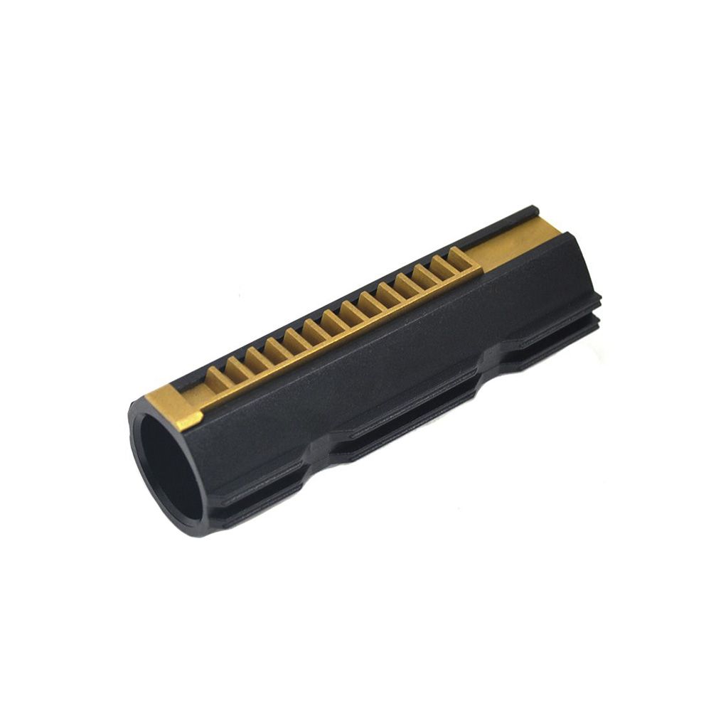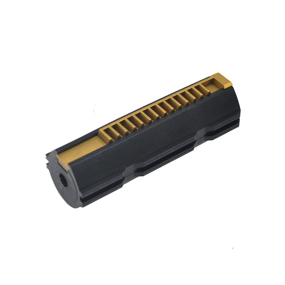 Modify Quantum Piston is newly-designed all-steel gear, titanium-plated, strengthened piston, features improved rigidity, unequal-length track for perfect contact against AEG gearbox.With superior stiffness, lightweight of polycarbonate construction, coupled with unequal-length track, the piston not only reduces load on gearbox but also delivers superior performance.