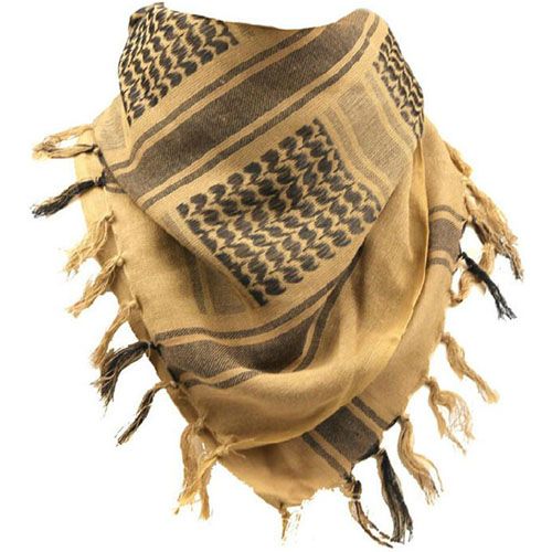 A traditional Arab headscarf, the shemagh, is a large and lightweight cloth typically made out of woven cotton. It is a popular garment among soldiers, worn for protection against the sun and sand in arid environments. This scarf is a valuable accessory during airsoft and paintball games.