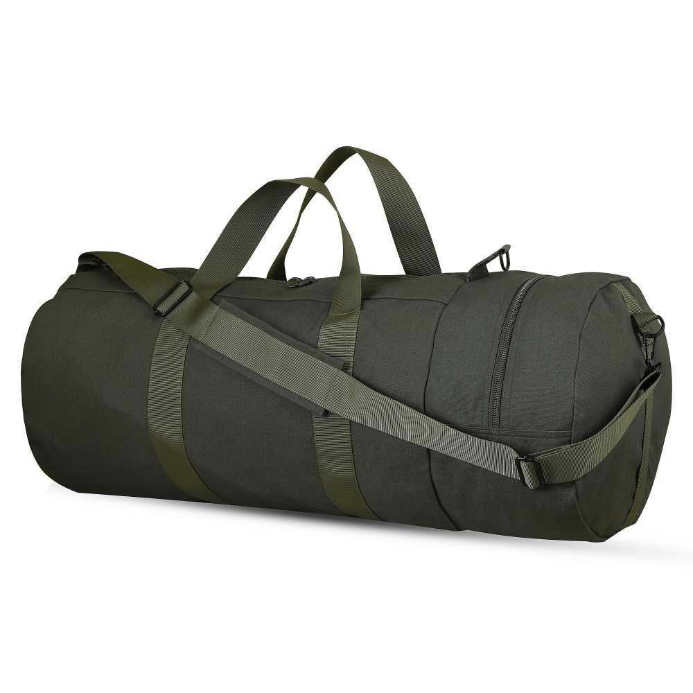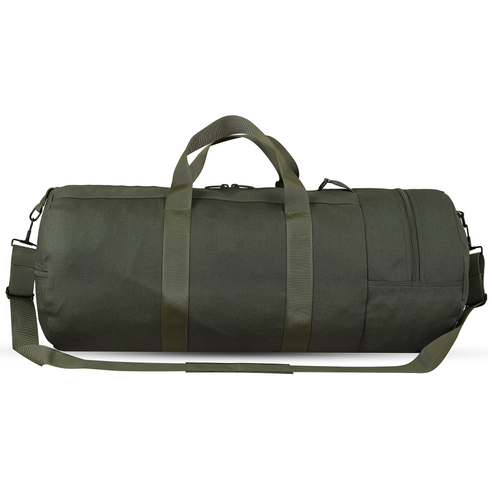Built tough for action, the Raven X CanvasOps Double Ender Duffle Bag is the ideal load-out companion for gym days, travel, or field ops. Crafted from heavyweight canvas, this rugged cylindrical duffle offers ample storage with dual end compartments for organized access to your gear. The wrap-around handles and detachable shoulder strap give you versatile carry options, while the heavy-duty zippers keep your load secure. Its simple, tactical look in olive drab fits right in with military, training, or urban use—ready to go wherever your mission takes you.