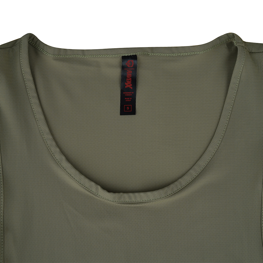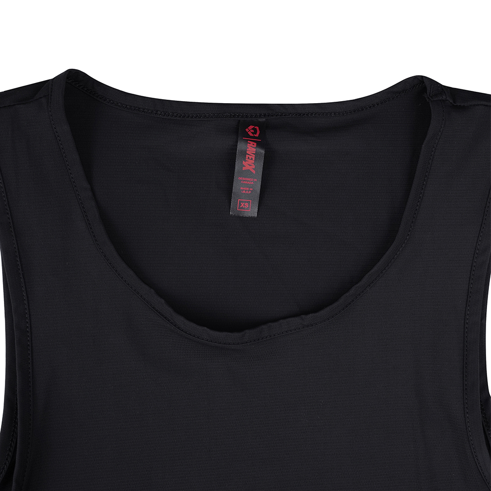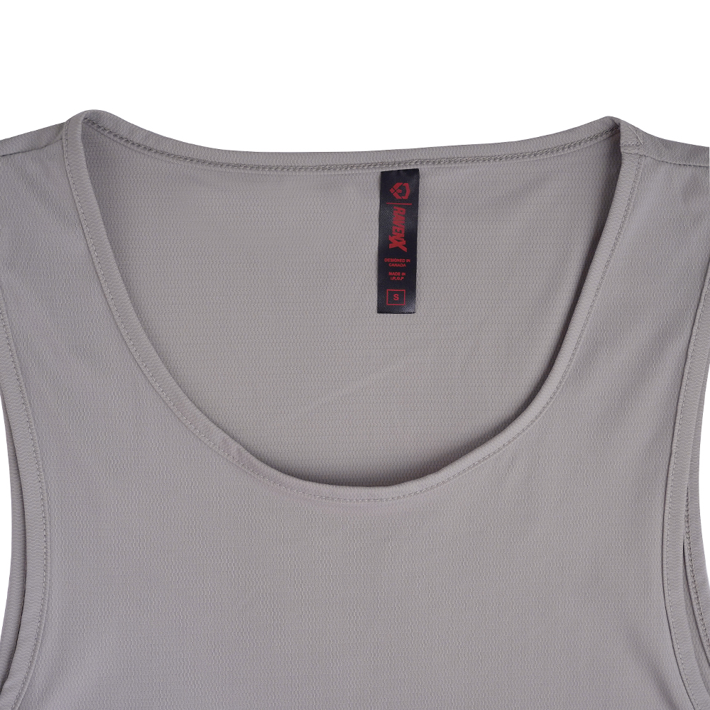 This lightweight nylon–spandex fabric top tank provides a smooth surface and steady four-way stretch. Its blend supports movement while maintaining shape through repeated wear.