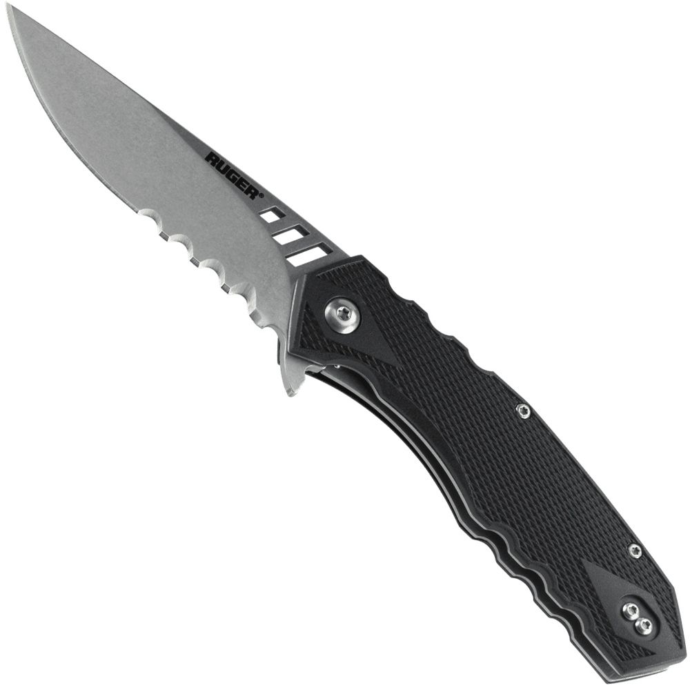 The CRKT Ruger Compact Follow-Through is a much more pocket-friendly version of the full size Follow-Through, designed by custom knifemaker Matthew Lerch. The 3.25-inch drop point blade is perfect for small, detail oriented tasks and is available with a plain or combo serrated edge. It features a stonewash finish and a checkered black handle made of tough glass-reinforced nylon.