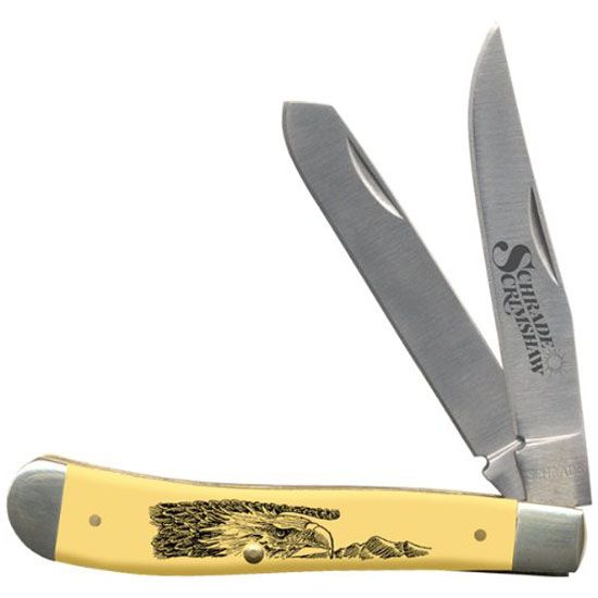 Schrade Gunstock Trapper Yellow With Eagle Scene