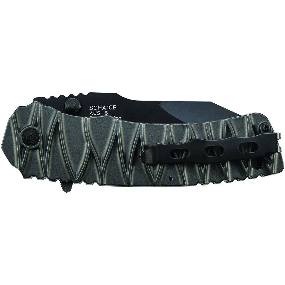 Schrade M.A.G.I.C. Dual Action Manual & Assisted Opening Liner Lock Folding Knife, Black AUS-8 High Carbon Stainless Steel Clip Point Blade with Ambidextrous Thumb Knobs and Thumb Rest Jimping, Grey Ridged Aluminum Handle with Model Selector Switch, Spine Jimping, Lanyard Hole, and Pocket Clip.