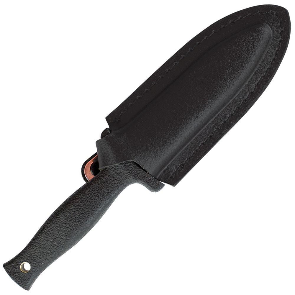 Schrade® Small Boot Knife Fixed Blade, Black 7Cr17 High Carbon Stainless Steel Double Edged Spear Point Blade with Blood Groove, Black Textured TPE Wrapped Handle with Lanyard Hole, Black Leather Sheath with Boot/Belt Clip.