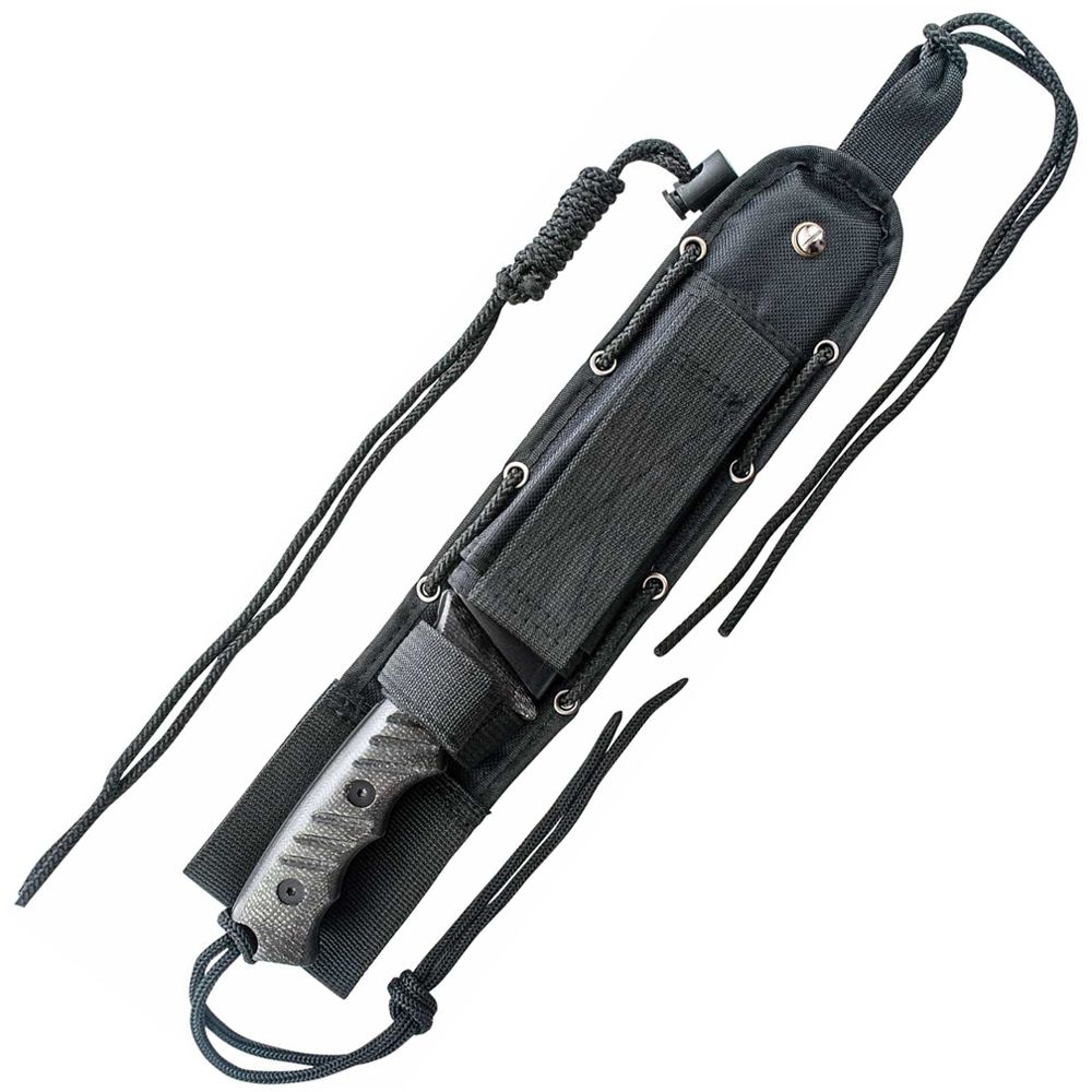 Schrade Extreme Survival Full Tang Fixed Blade, Black 8Cr13MoV High Carbon Stainless Steel Bowie Blade, Textured and Grooved Micarta Handle Slabs, Lanyard Hole, Lanyard, Multiple Carry Position Ballistic Belt Sheath with Large Storage Pouch.
