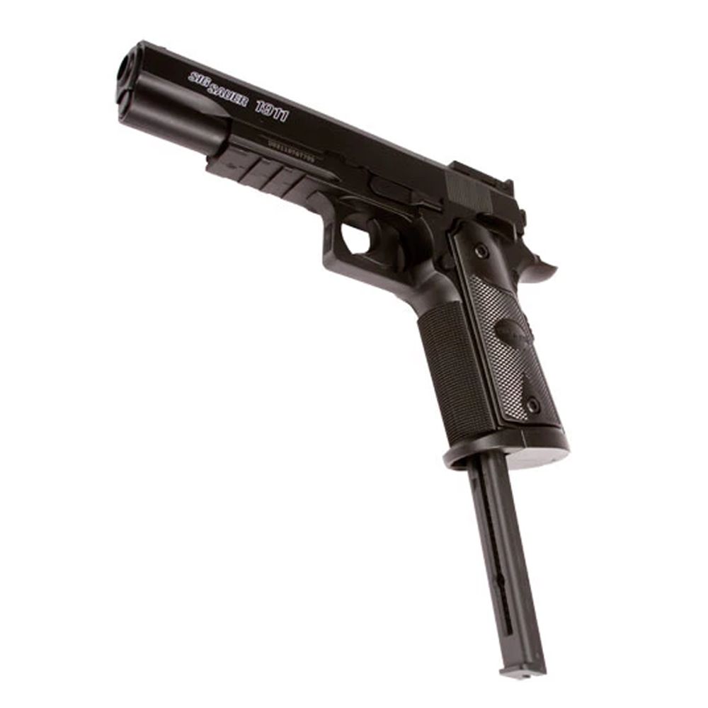 The Sig Sauer GSR 1911 is a beginner steel BB pistol with all the critical features of an entry level gun. Don't let this gun's simplicity fool you - it packs a real punch at upwards of 400 FPS! The reliable build, along with the included laser sight and goggles, makes this kit stand out from your average budget plinker.