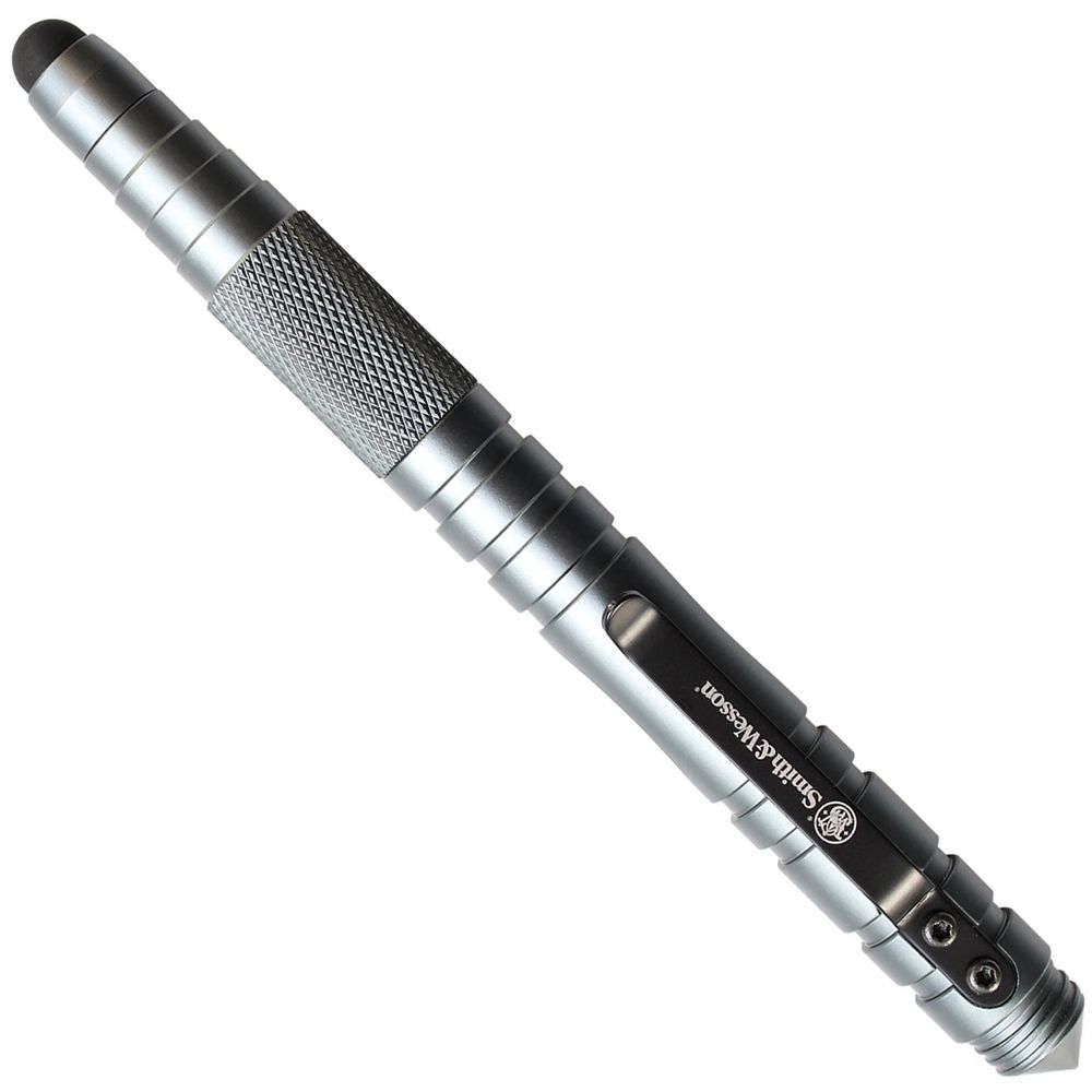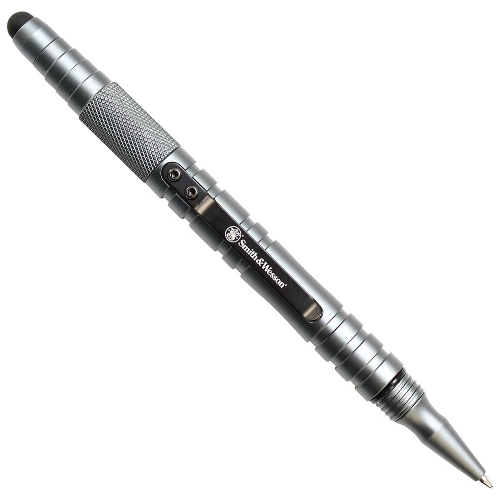 Smith & Wesson Stylus Tactical Pen is made from CNC Machined T6061 Aircraft Aluminum and features a screw cap with a replaceable stylus tip and pocket clip. The pen includes one Schmidt P900M Parker style black ball point ink cartridge.