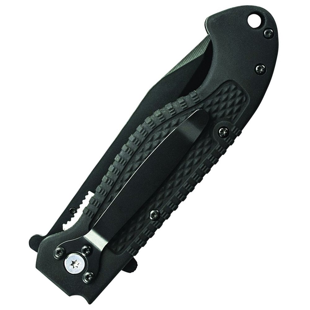 Smith & Wesson Special Tactical Liner Lock Folding Knife, Black 7Cr17 High Carbon Stainless Steel Partially Serrated Clip Point Tanto Blade with Thumb Knob and Index Flipper, Textured Black ABS with Rubber Coating Handle with Raised Jimping, Lanyard Hole, and Pocket Clip