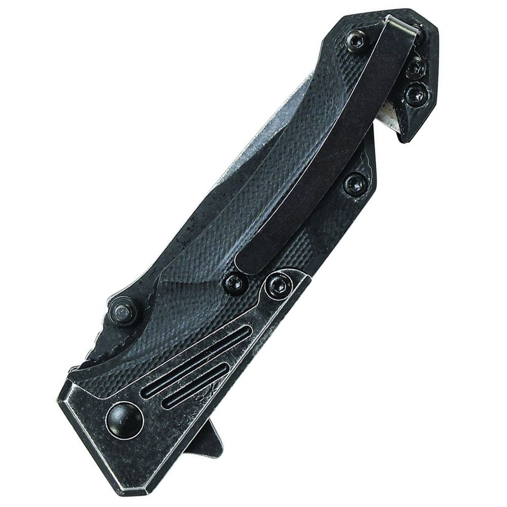 Smith & Wesson Extreme Ops Liner Lock Folding Knife, Stone Washed 7Cr17MoV High Carbon Stainless Steel Tanto Blade with Ambidextrous Thumb Knobs, Index Flipper, and Thumb Ramp Jimping, G-10 and Stone Washed Aluminum Handle with Strap Cutter and Pocket Clip