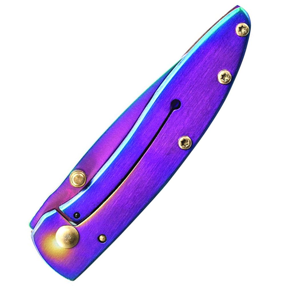 Smith & Wesson Frame Lock Folding Pocket Knife, Titanium Reflective Coated 7Cr17 High Carbon Stainless Steel Drop Point Blade with Ambidextrous Thumb Knobs and Jimping, Titanium Reflective Stainless Steel Handle