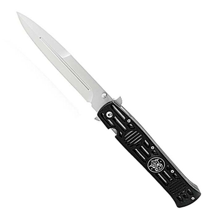 Smith & Wesson SW-CK114L Dagger Folding Knife 4.9 inch Satin Plain Blade G10 Handles