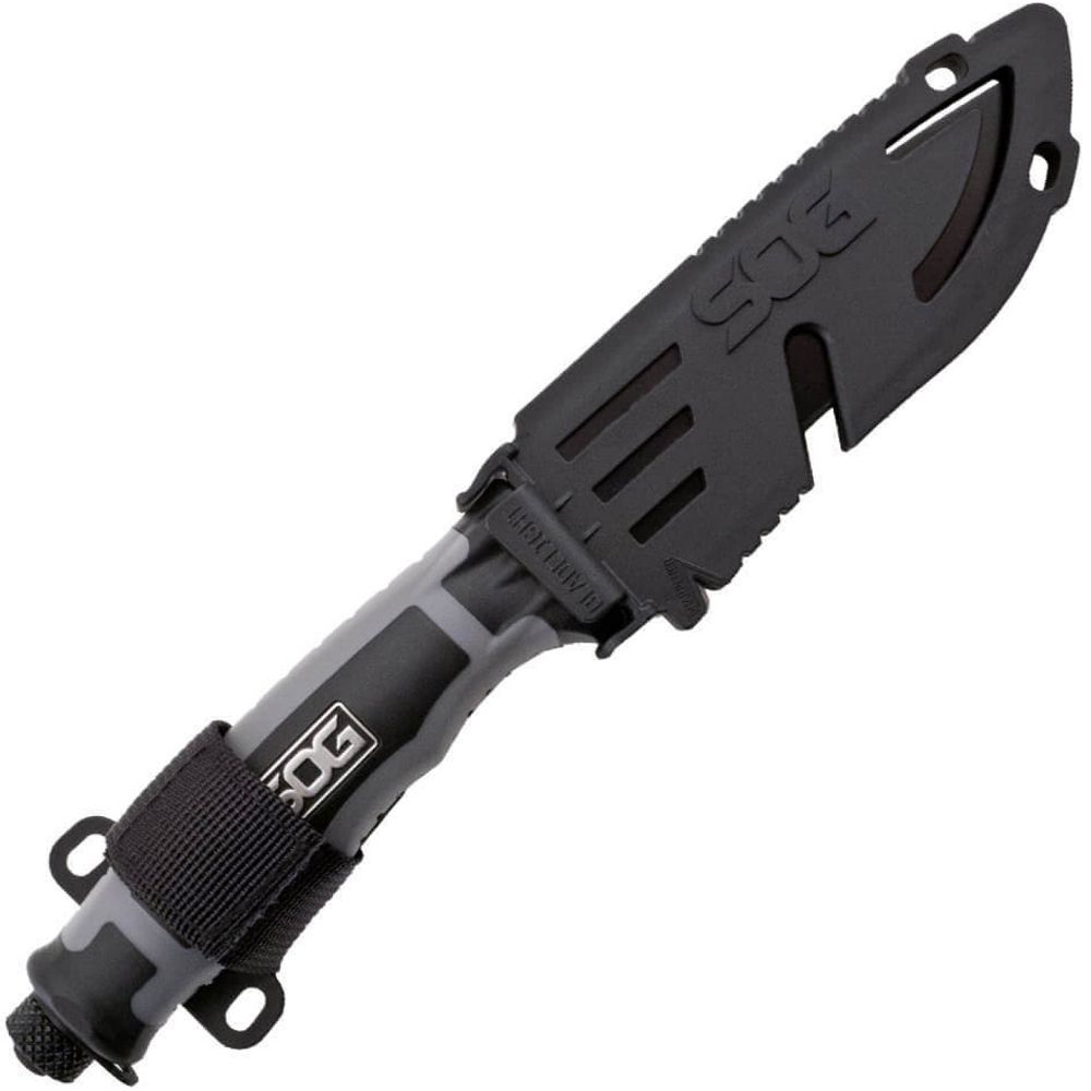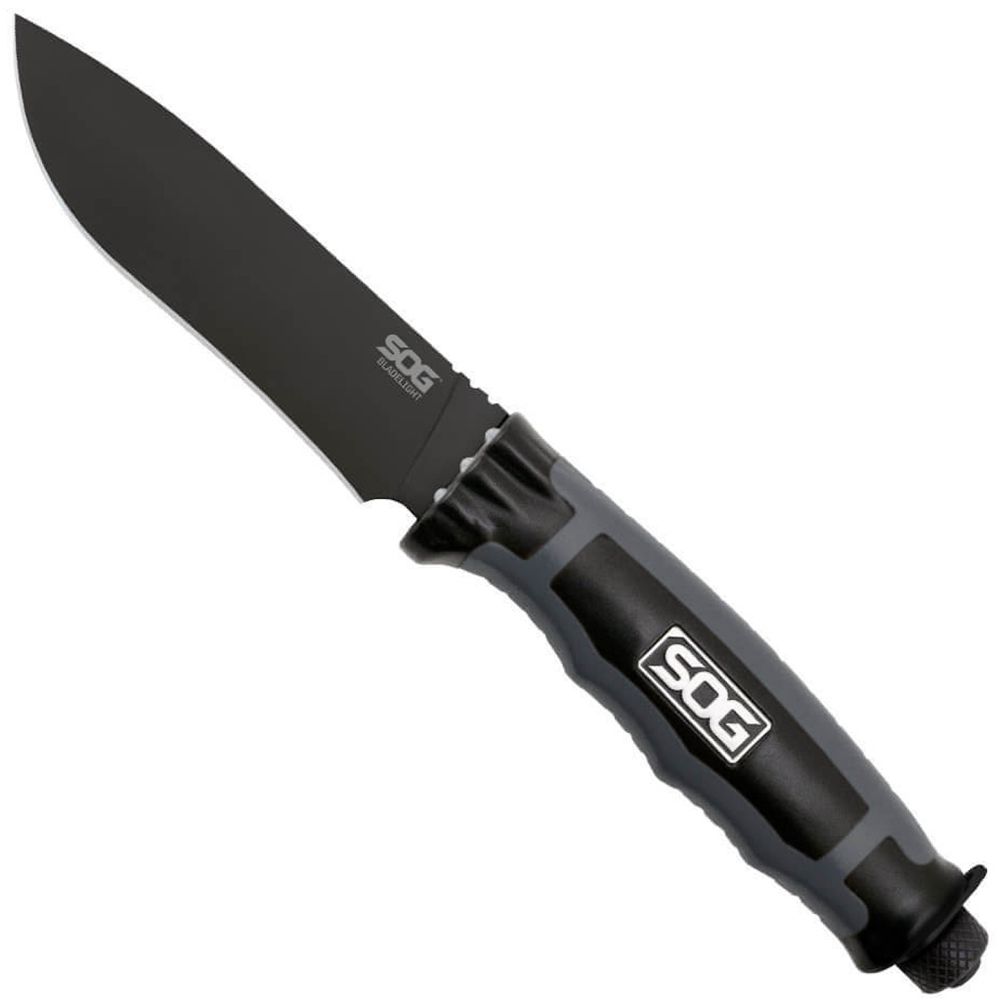Long a trusted member of tactical operations around the world, SOG readies for deployment in low light situations with this new member of the award-winning Bladelight family. The six intensely bright red LED lights (three on each side of the blade) have a measured output of 20 lumens and are designed for use in conjunction with night optics needed by military or law enforcement specialists. The fixed blade - made of 8CR13MOV stainless steel - is anchored to a glass reinforced black nylon handle. One AAA battery will provide more than four hours of burn time for the LED lights.