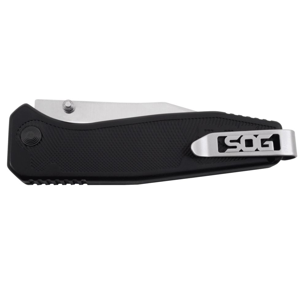 If you're looking for a great folding knife, look no further than the Flare assist. Featuring our patented SOG Assisted Technology (SAT) opening system, the Flare opens with authority. The lightweight but strong glass-reinforced nylon (GRN) handle and a clip point blade that provides durability and versatility. The Flare also includes our trademark reversible low-carry pocket clip, so you can carry it everywhere with confidence.