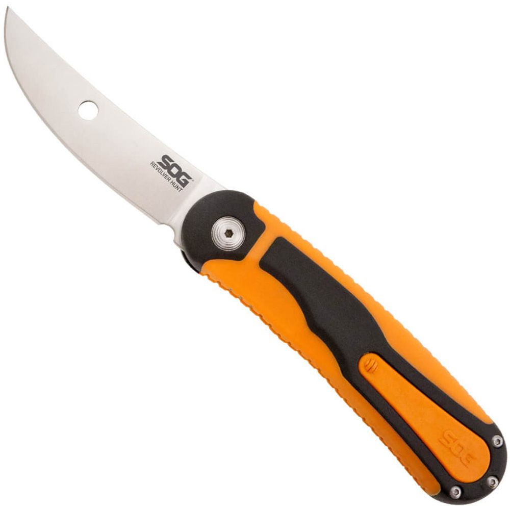 The Revolver 2.0 Hunt is the definitive knife for the outdoorsman, hunter, archer, fisherman, and sportsman. With a upswept clip point blade, large flat bevel grinds, gut hook, and a bone/wood saw, you can dress game, cut tree stands, build shelter, and still have enough left to clear that pesky redwood tree out of your way.