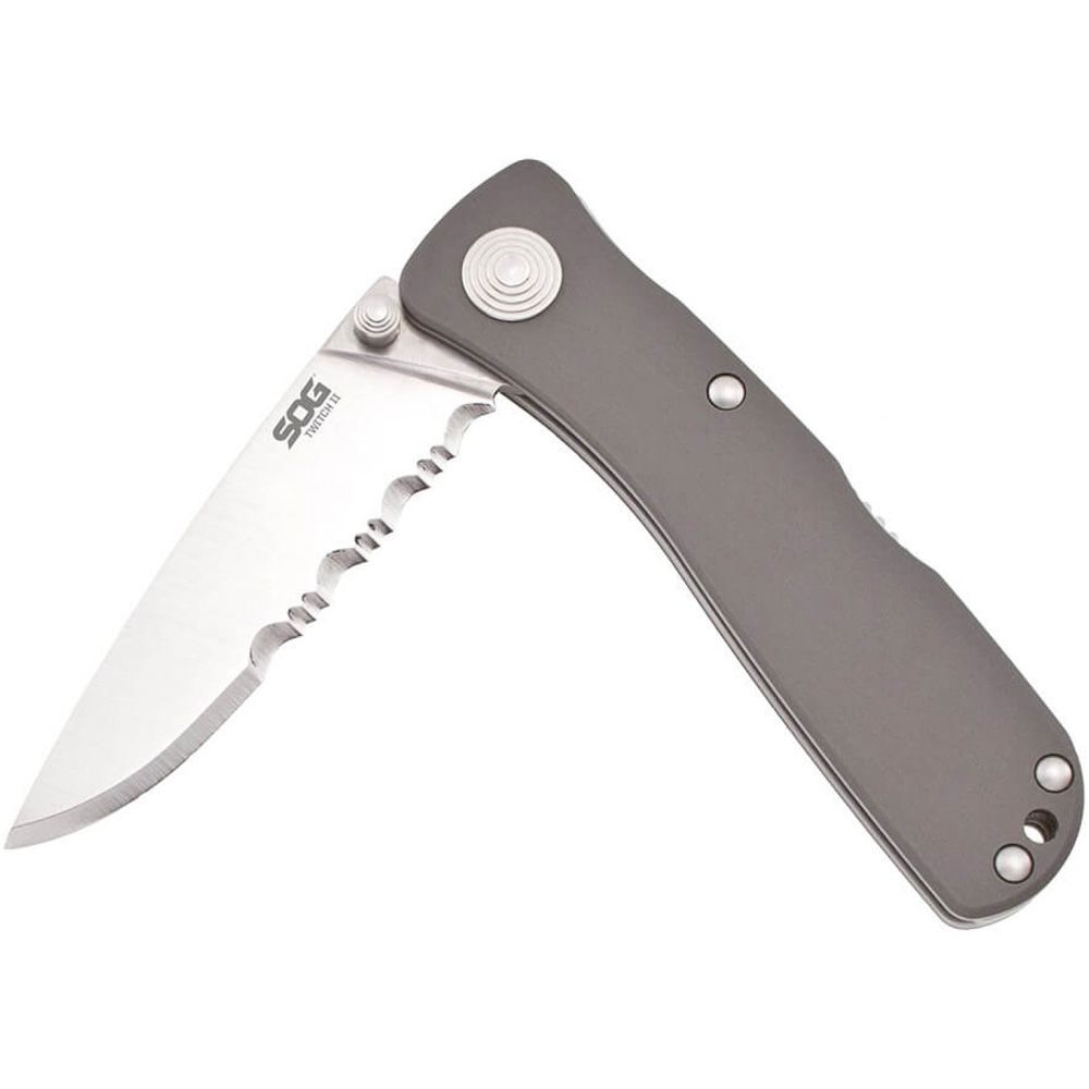 Implement with SOG Assisted Technology (S.A.T. ™), the Twitch is extremely quick to open with either hand using the double thumb studs or kick on the back. Its full metal construction is durable and sturdy. The clip can be used for low-carry or securing dollar bills and cards. Incorporated into the design is versatile safety lock that helps insure the blade will not open while being carried or close unexpectedly while in use. The SOG Twitch series is a great EDC with a variety of options to choose from.