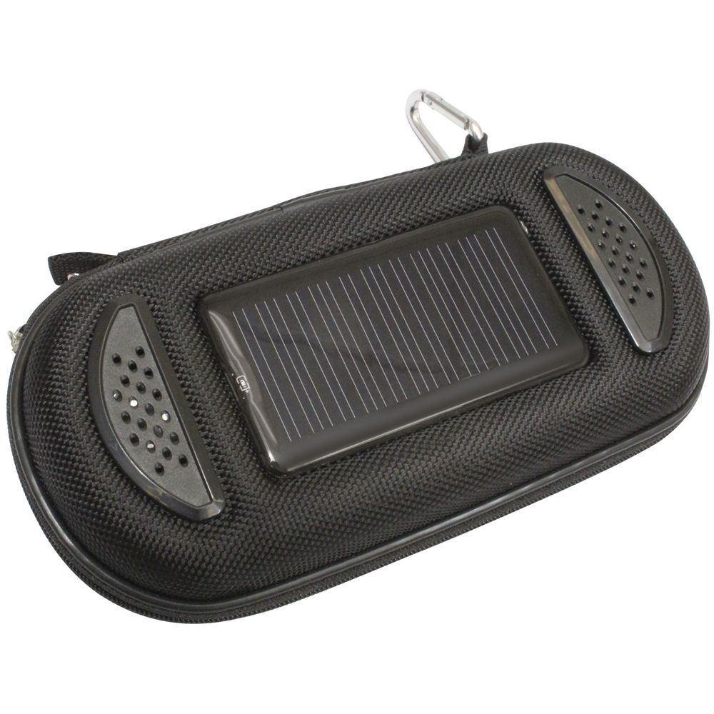 This pair of speakers can be charged on solar power, and can be attached to most of the devices, including IPods and mobile phones. Each of these speakers gives a good output of 3W. The energy for the system is stored on a lithium battery. The system has a DC input of 5-6V 500MA, and also a DC output of 5.5V 300~500MA. Solar panel details are: 5.5V/70MA 0.38W, with dimensions of 7.5 X 4 X 1.75 (in inches). Accessories include cables and utility case. The mesh pouch in the case is great for keeping accessories and wires.