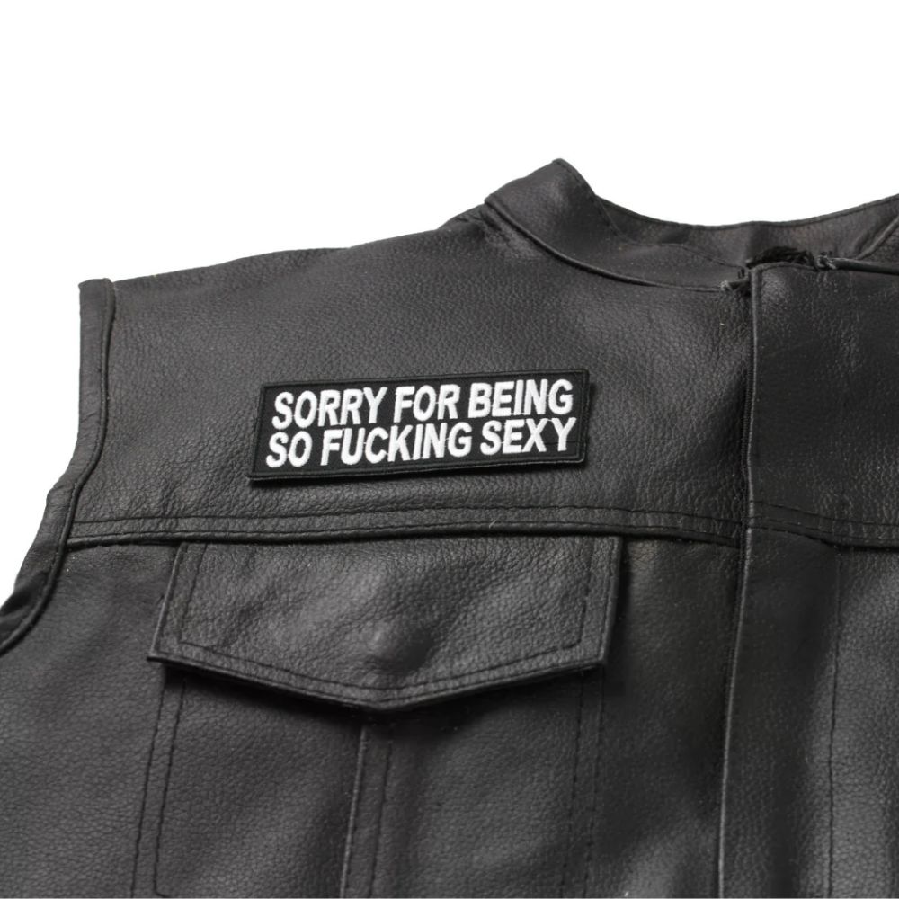 Show Off Your Attitude With The Sorry For Being So Fucking Sexy Patch! This Hilarious Patch Features A Bold Embroidery That Proclaims “Sorry For Being So Fucking Sexy” In Bright White On Durable Black Twill, Measuring 4x1.5 Inches. Perfect For Bikers And Anyone Who Loves To Make A Statement, This Patch Is A Fun Way To Express Your Confidence!