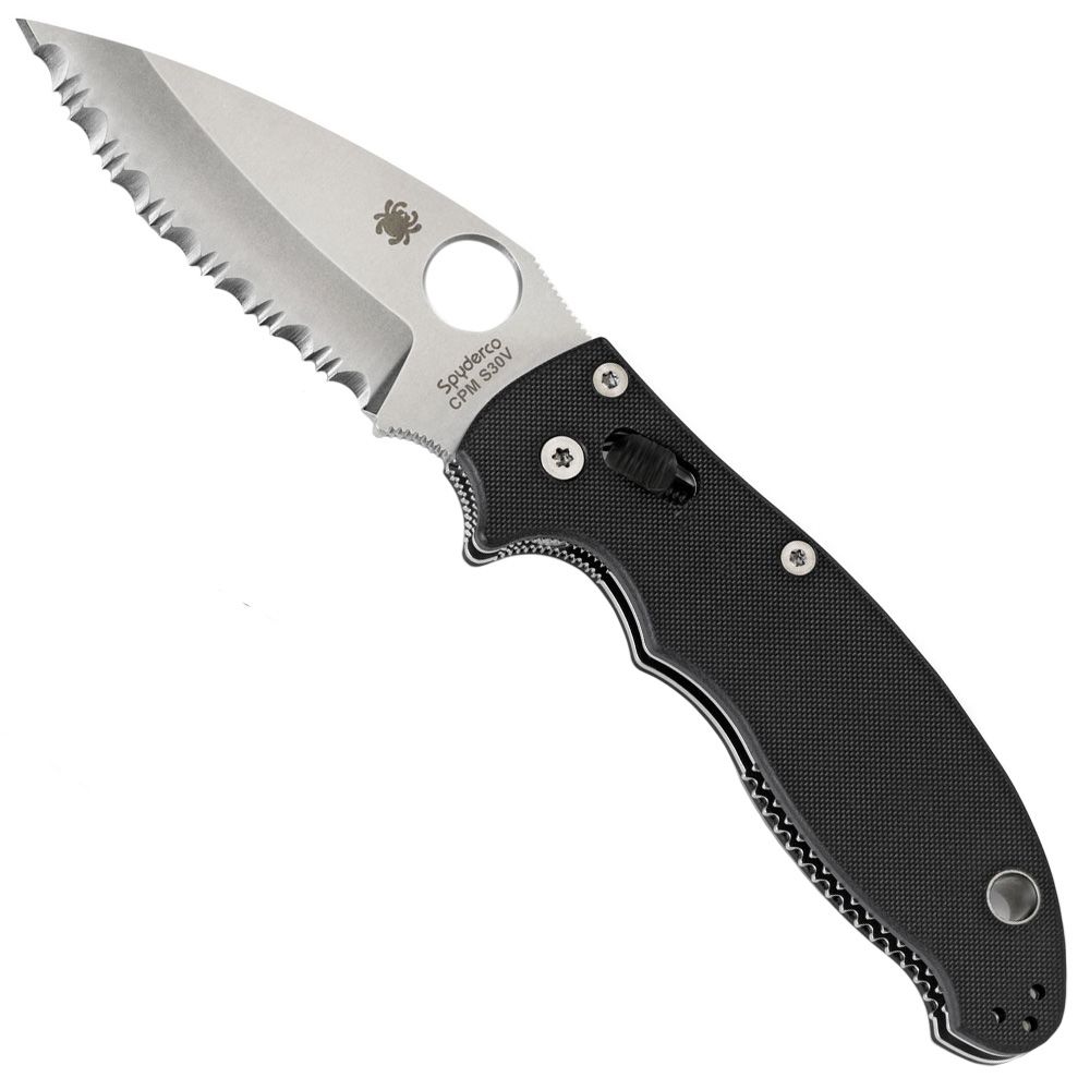 A powerful synergy of high performance and low profile, the Manix 2 Black Blade is a reliable, full-service folding knife with a stealthy non-reflective finish. Its broad, full-flat-ground blade is precision machined from premium CPM® S30V® particle metallurgy stainless steel and coated with an ultra-durable black tungsten DLC (Diamond Like Carbon) coating. Matching areas of jimping (textured grooves) on the thumb ramp and the index-finger choil complement the handle’s refined ergonomics to offer an amazingly secure, comfortable grip. Its handle is constructed with full stainless steel liners, a stainless steel back spacer, and textured black G-10 scales. It houses the knife’s high-strength Ball Bearing Lock™ mechanism, which consists of a hardened steel ball bearing encased in a polymer cage. When the knife is opened, a spring plunger drives the ball bearing forward onto a ramp on the blade, wedging it securely open. Pulling back on the cage releases the lock and allows the blade to pivot smoothly closed. Both opening and closing are easily performed with either hand and without ever placing your fingers near the blade’s edge. A reversible hourglass pocket clip supports left or right-side tip-up carry, complementing the blade’s Trademark Round Hole and lock mechanism to make every aspect of the knife’s carry, deployment, and operation completely ambidextrous. Like the blade, all metal components of the handle feature a durable, non-reflective black coating that makes the Manix 2 Black Blade ideal for use in tactical environments where light discipline is critical.
