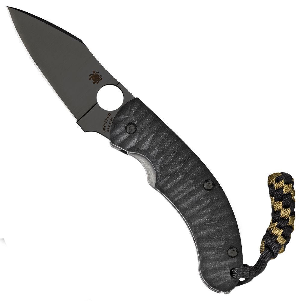 Fred Perrin doesn't sit still, figuratively or physically. He's perpetually in motion, like a bullet-train picking up speed, as evidenced by his resume. Fred has been a world-vetted tae kwon do and stick-fighting champion, a French Army Commando, a professional writer, a martial arts instructor and one of France's most recognized professional knifemakers and he's only in his forties. The latest product of his alliance with Spyderco is the Perrin PPT folder sprint run. PPT refers to folder's three designers; Fred Perrin, Philippe Perotti and Sacha Thiel. The lock is a crossbreed, blending elements of both Michael Walker's LinerLock and Chris Reeve's Reeve Integral Lock. The lock functions as a frame-lock but a G-10 scale overlaying the lock looks very LinerLockish. The black G10 handle scales are milled with corrugated creases for skid-free and ergonomic handling. Its CPM-S30V steel blade is a modified-Wharncliffe profile with a finger choil, spine jimping and a tapered swedge. It's a stealthy looking blade with a black titanium carbonitride (TiCN) coating that is durable and non-reflective for tactical applications. Screw together construction. Left/right deep-carry pocket clip and lanyard hole open the door for endless attachment options. Gold and black lanyard included.