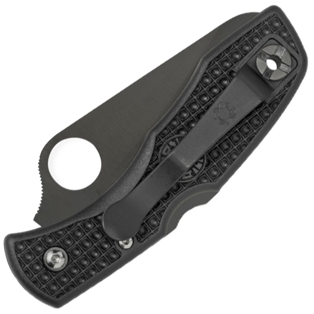 The Salt 1’s H-1 blade features a partial hollow grind that provides excellent edge geometry supported by a strong, full-thickness spine. It is available with either a Plain Edge or fully serrated Spyder Edge cutting edge and features a generous 14mm Trademark Round Hole to allow swift one-handed opening, even while wearing gloves. In the open position, the blade locks via a sturdy back lock mechanism, which includes a Boye Dent to help prevent unintentional release.