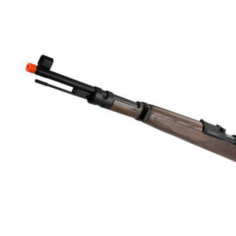 The Karabiner 98 kurz (German: "carbine 98 short", often abbreviated Kar98k or K98k and often incorrectly referred to as a K98 (which was a Polish Carbine) is a bolt-action rifle chambered for the 7.9257mm Mauser cartridge that was adopted on 21 June 1935 as the standard service rifle by the German Wehrmacht. It was one of the final developments in the long line of Mauser military rifles. Although supplemented by semi- and fully automatic rifles during World War II, it remained the primary German service rifle until the end of the war in 1945. Millions were captured by the Soviets at the conclusion of World War II and were widely distributed as military aid. The Karabiner 98k, therefore, continues to appear in conflicts across the world as they are taken out of storage during times of strife.